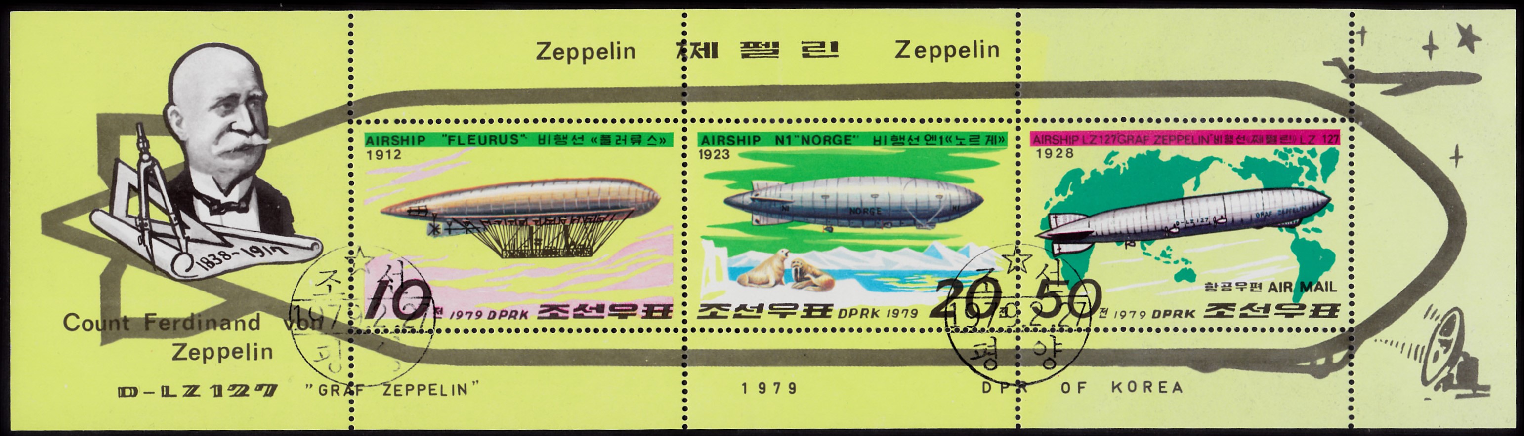 Auf dieser Marke aus Korea-Nord (MiNr 1818) ist das Luftschiff LZ-127 "Graf Zeppelin" abgebildet.