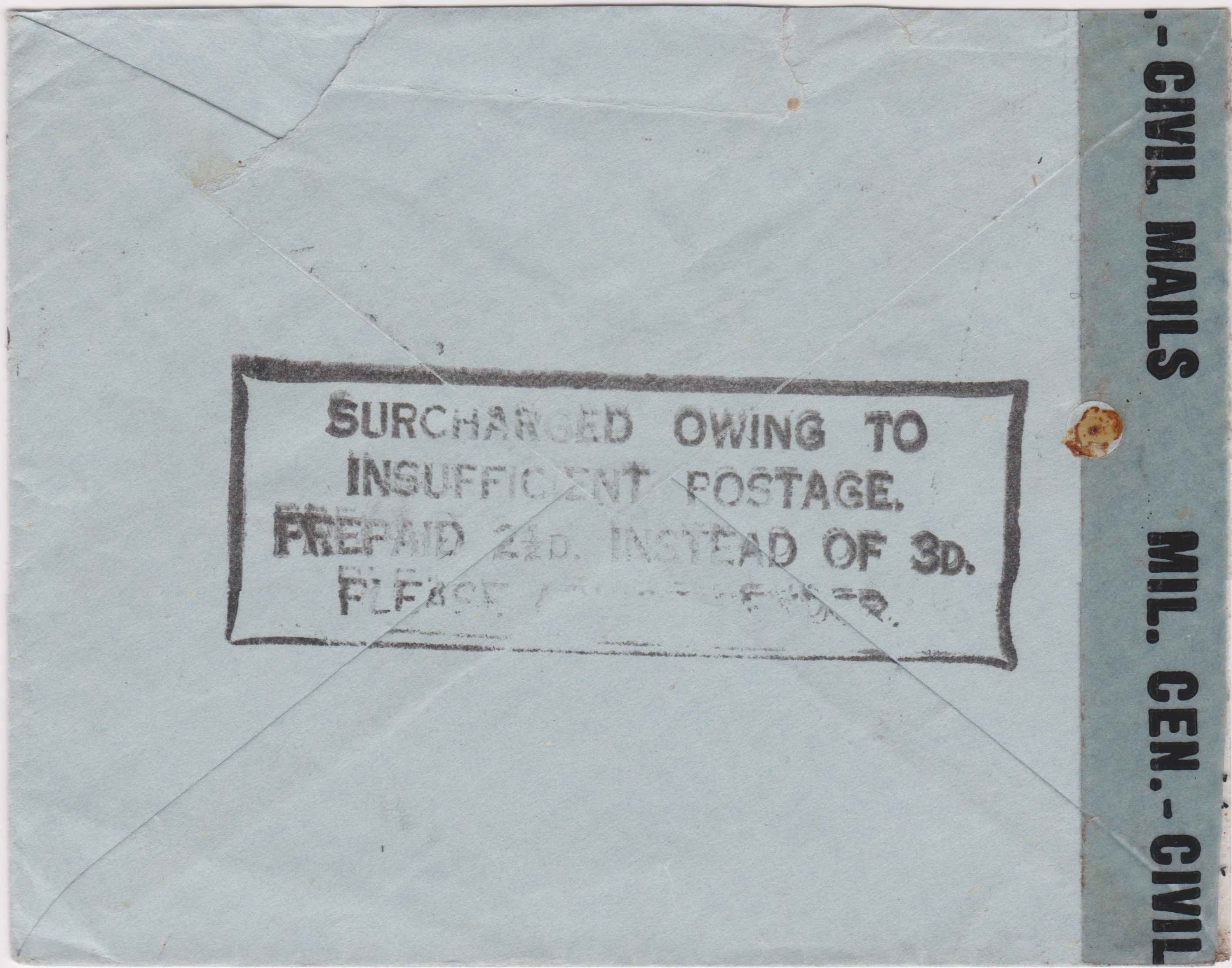 https://en.wikipedia.org/wiki/Britain_C ... %20CouncilEs wurde festgestellt, dass dieser Brief nach Deutschland mit 3 Pence hätte frankiert werden müssen, woraufhin ein Stempel auf der Rückseite angebracht wurde, hier eine besser lesbare Kopie eines solchen Stempels: