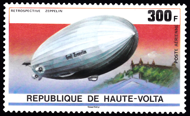 Auch in Obervolta ist eine Marke (MiNr 830) mit dem Luftschiff LZ 130 "Graf Zeppelin II" erschienen. Sie zeigt LZ 130 während eine Deutschland-Fahrt über Würzburg.