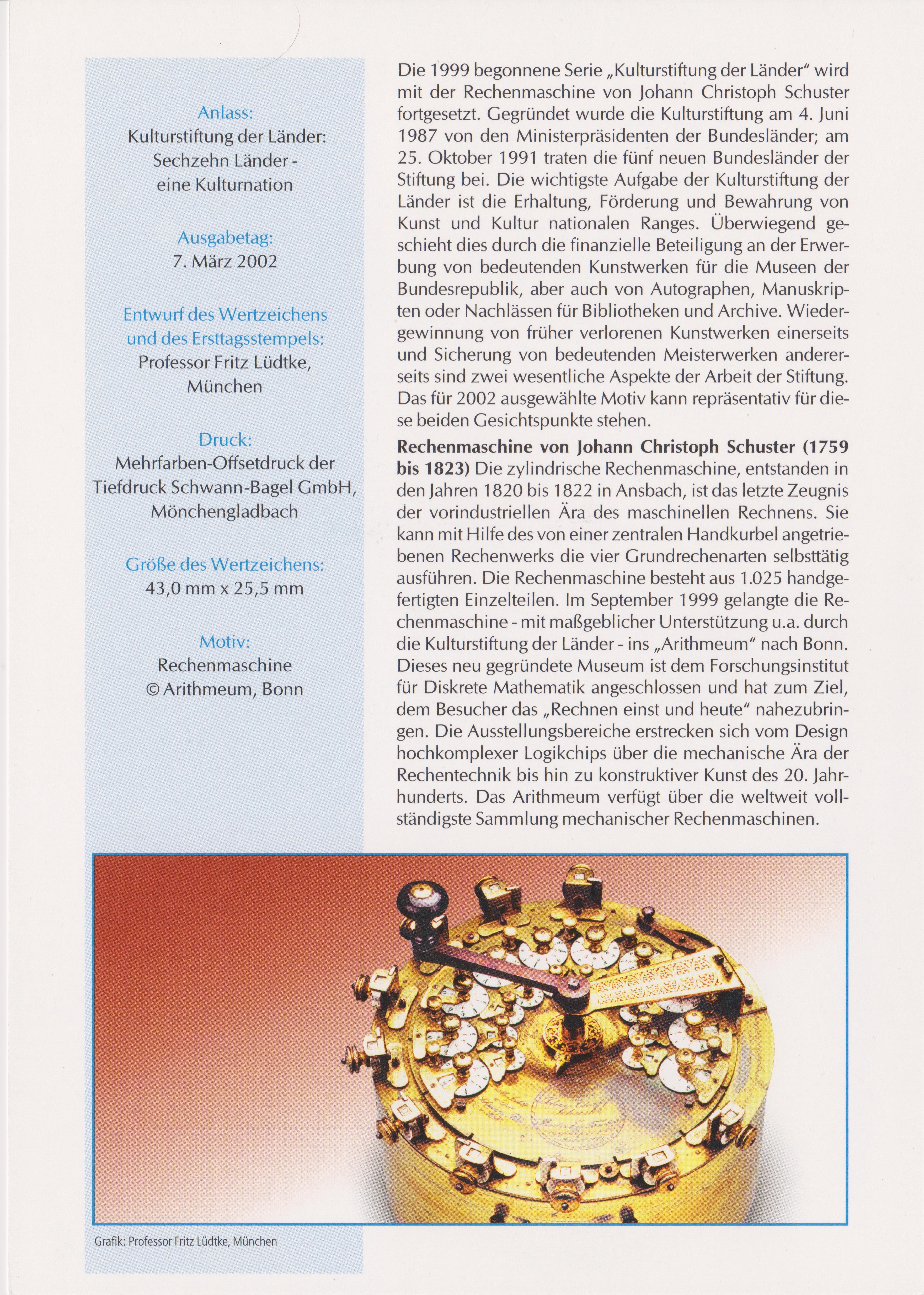 Dieses ETB 9/2002 zeigt eine Rechenmaschine von Johann Christoph Schuster: