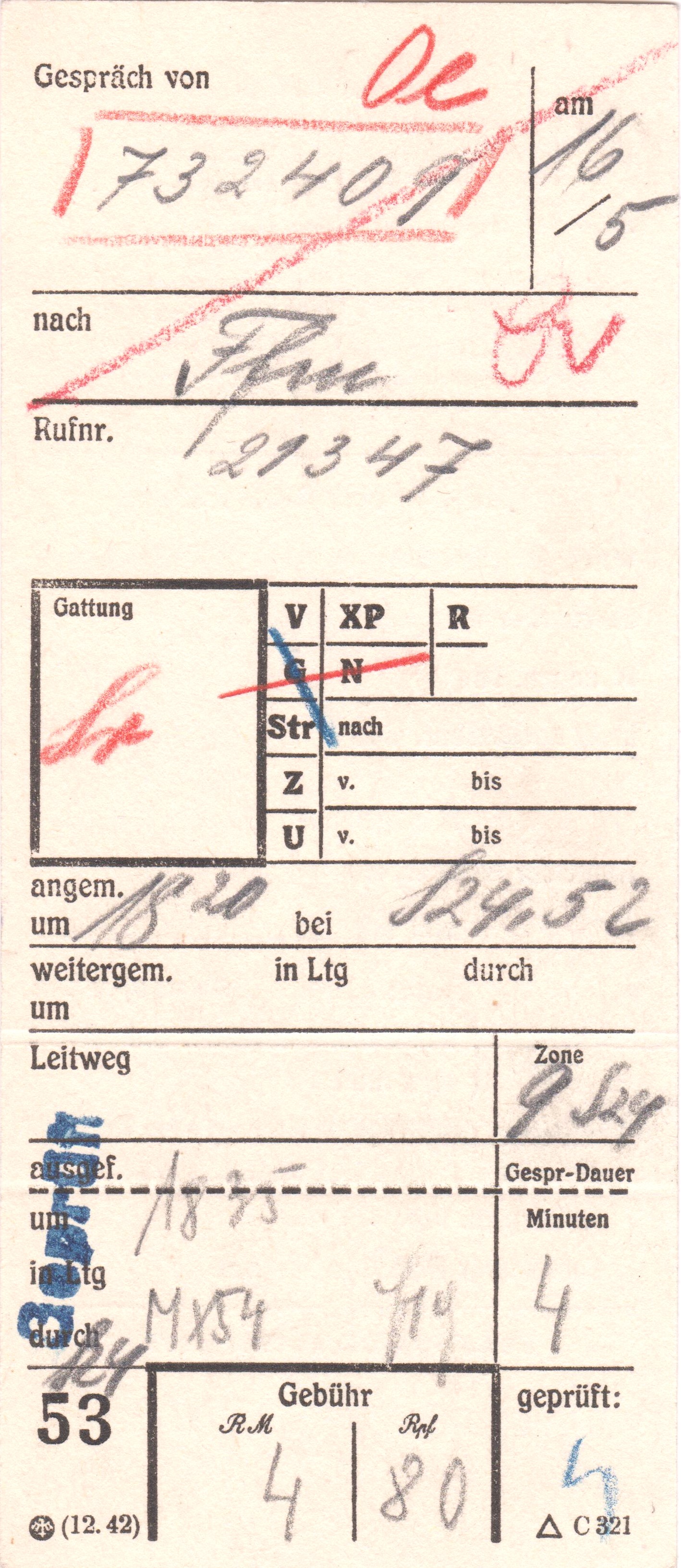 Solche Formulare "Mitteilung über Telefonanschluß" beförderte die Post gebührenfrei!