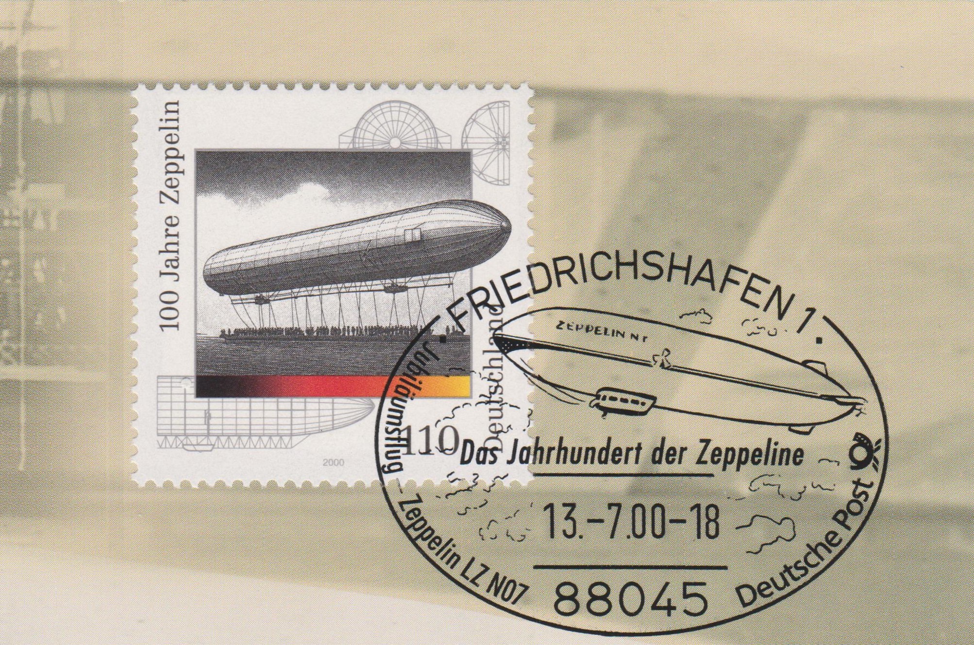 Die Frankatur wurde am 26.02.1998 per HWSt ''88045 FRIEDRICHSHAFEN ZEPPELINSTADT am Bodensee'' entwertet, der als Motiv ebenfalls den Zeppelin NT zeigt.