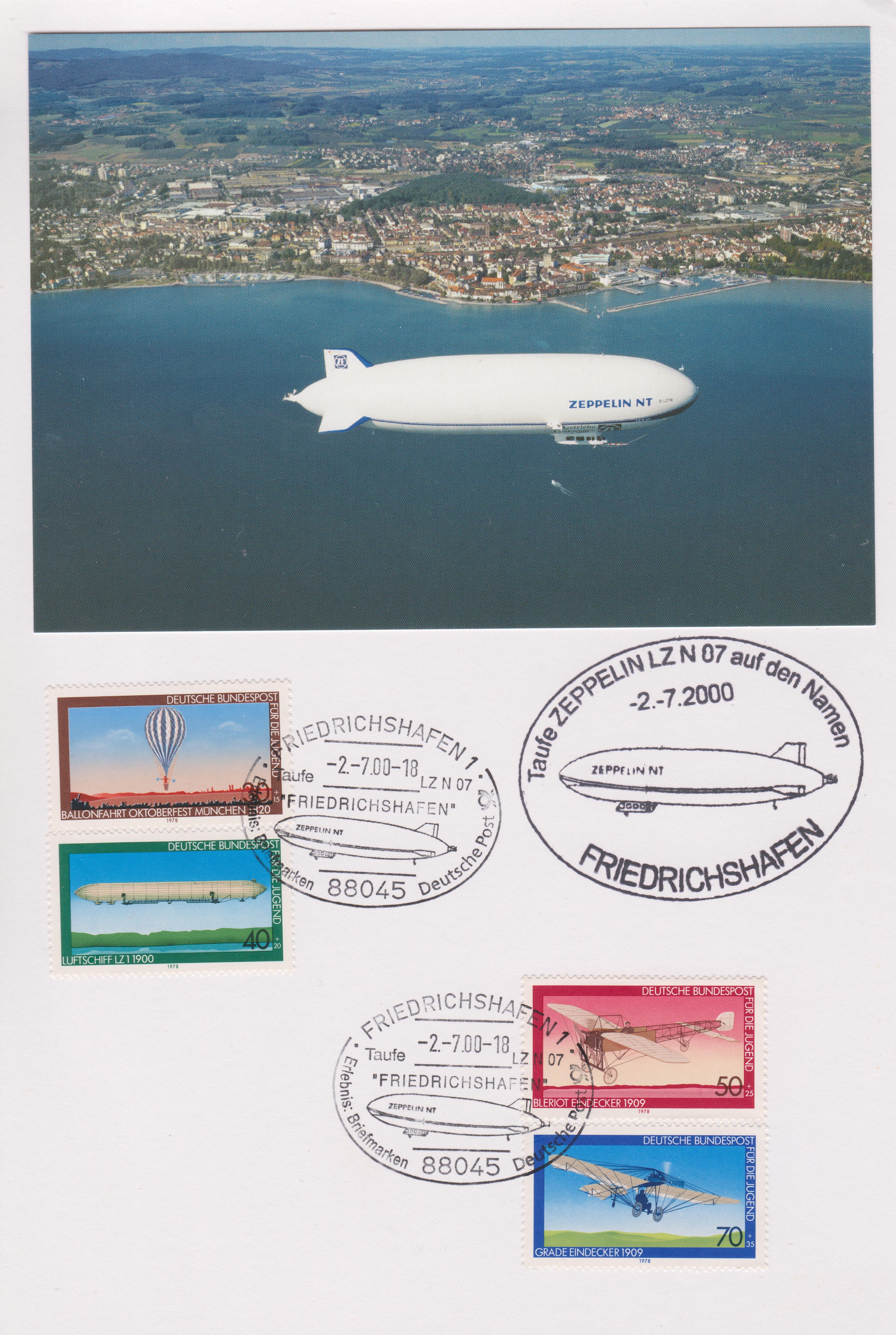 Dieser Beleg dokumentiert per violettem Bordstempel ''AN BORD DES ZEPPELIN NT LUFTSCHIFFES LZ N07 D-LZFN 25 FEB 1998'', der auf einem Bordsiegel abgeschlagen wurde, den als Testflug des Prototyps des Zeppelin NT durchgeführten Bodensee-Rundflug.