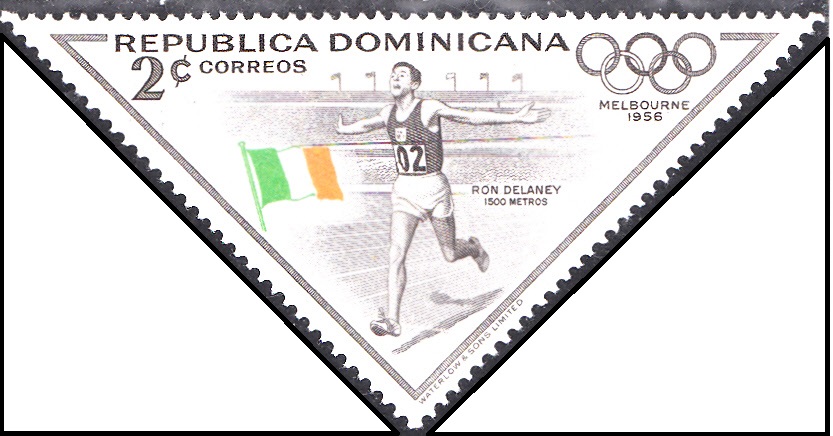 Auf dieser Marke aus der Dominikanischen Republik (MiNr 614 A) ist Ron Delany, ein ehemaliger irischer Mittelstreckenläufer, abgebildet. Bei den Spielen in Melbourne siegte er im 1500m-Lauf.