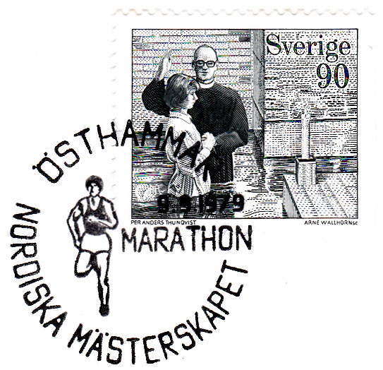 Sonderstempel vom 9.9.1979 aus Östhammar zu den Nordischen Meisterschaften im Marathonlauf mit der Abbildung eines Marathonläufers.