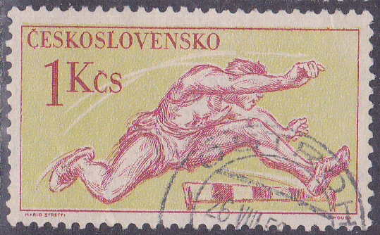 Aus der Tschechoslowakei kommt diese Marke (MiNr 1119) mit einem Hürdenläufer.