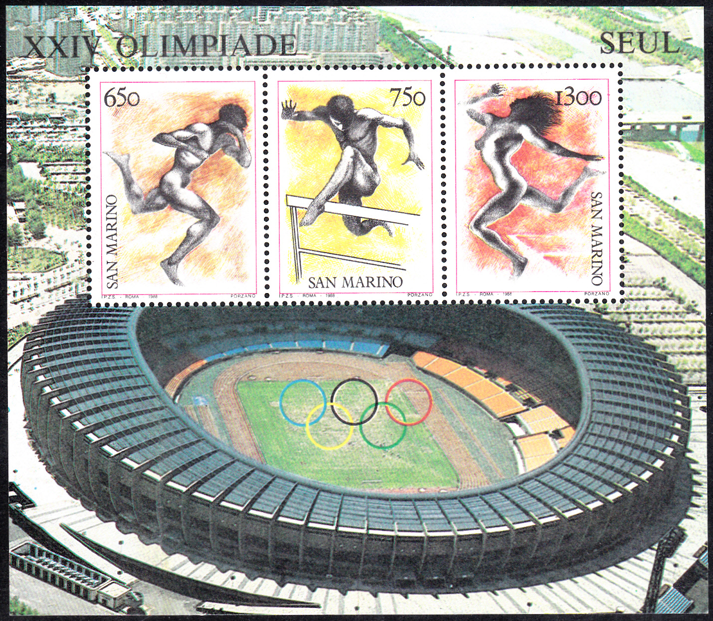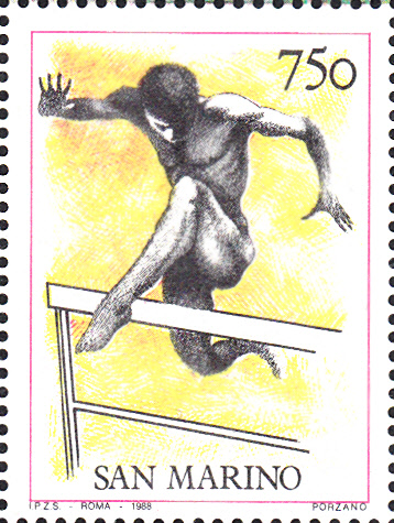 Zu den Olympischen Spielen 1988 in Seoul erschien in San Marino eine Marke (MiNr 1400) in einer Blockausgabe (MiNr Block 11) mit der Darstellung eines Hürdenläufers in Anlehnung an Darstellungen in der Antike.