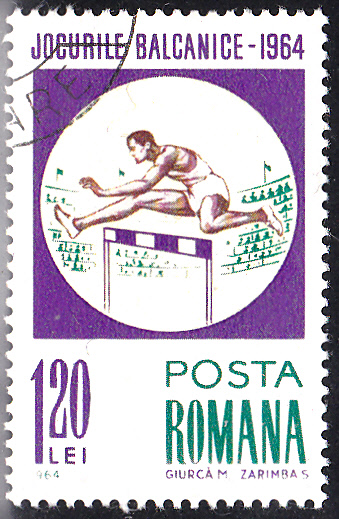 Auf dieser Marke aus Rumänien (MiNr 2303) zu den Balkanspielen 1964 überquert ein Läufer gerade eine Hürde.