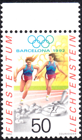 In Liechtenstein ist zu den Olympischen Spielen 1992 in Barcelona diese Marke (MiNr 1035) mit der Abbildung von zwei Läuferinnen beim einem Wechsel des Staffelholzes erschienen.