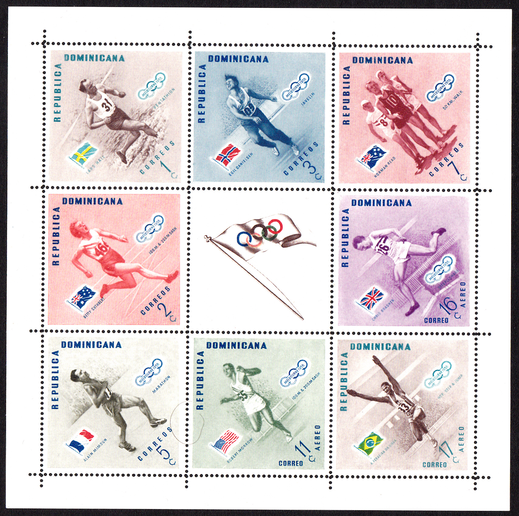 In der Dominikanischen Republik erschien diese Marke (MiNr 591 A) mit dem Olympiasieger 1956 im 3000-Meter-Hindernislauf Chris Brasher (Großbritannien).