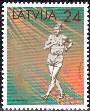 In Lettland erschien in einer Serie zu den Olympischen Spiele 1996 diese Marke (MiNr 429) mit der Abbildung eines Gehers.