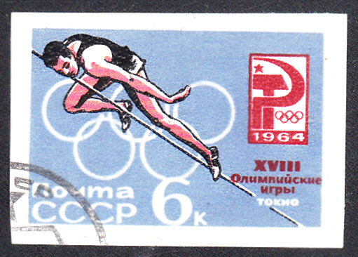 In der Serie zu den Olympischen Sommerspiele in Tokio erschien am 27. Juli 1964 dieser Wert zu 6 Kopeken (MiNr 2934 B) mit der Abbildung eines Hochspringers. Am 31.7.1964 gab es die Marke auch in der gezähnten Version (MiNr 2934 A)