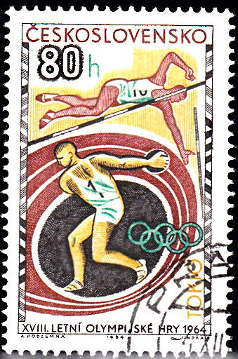 Zu den Leichtathletik-Europameisterschaften 1962 in Belgrad erschien in Polen diese Marke (MiNr 1343 A) mit der Abbildung eines stilisierten Diskuswerfers.