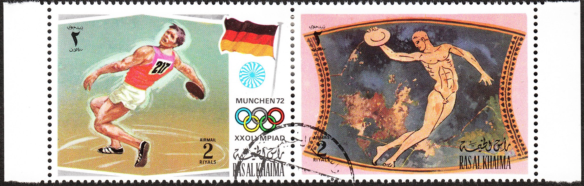 In den USA erschien am 19. Juli 1996 diese Marke zum Thema "100 Jahre Olympische Spiele der Neuzeit, Olympische Sommerspiele, Atlanta" diese Marke (MiNr 2750) mit der Abbildung einer römische Kopie des kompletten Diskobol des Myron (um 450 v. Chr.).