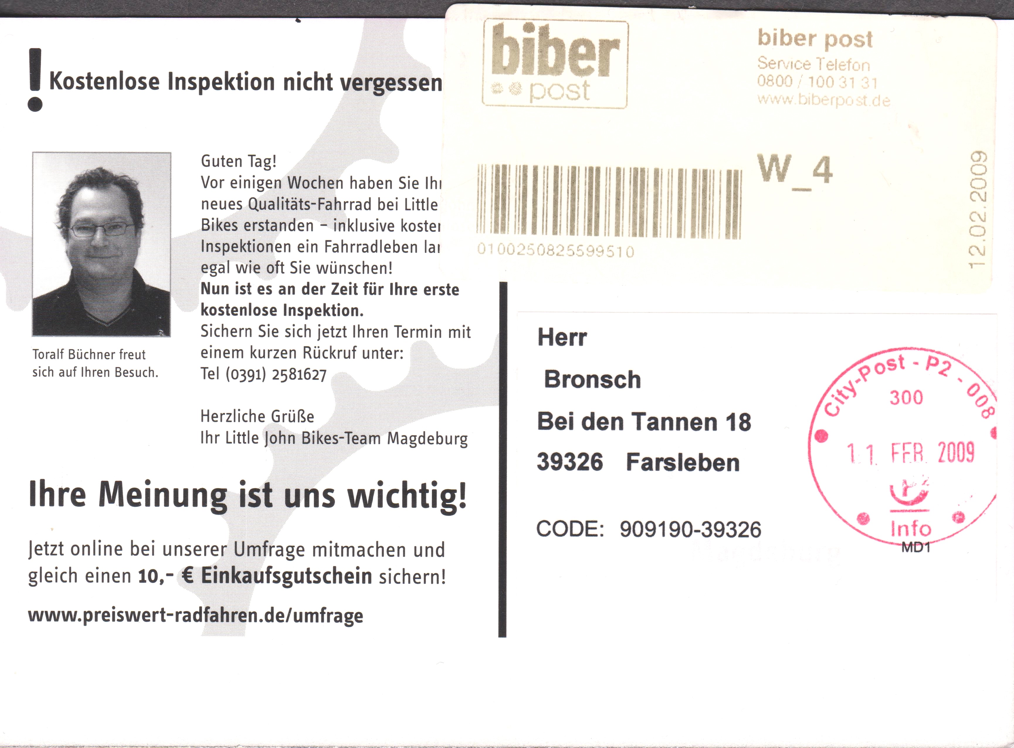 hier habe ich einen Beleg, der am 7.3.18 in Berlin bei der „pin Mail“ aufgegeben wurde. Er wurde dem Nordbrief übergeben und laut deren Codierung am 8.3.18 schon bearbeitet und zugestellt. Als Frankatur wurde eine 69 ct-Marke verklebt, die als Motiv einen radelnden Postboten vor dem Brandenburger Tor zeigt.