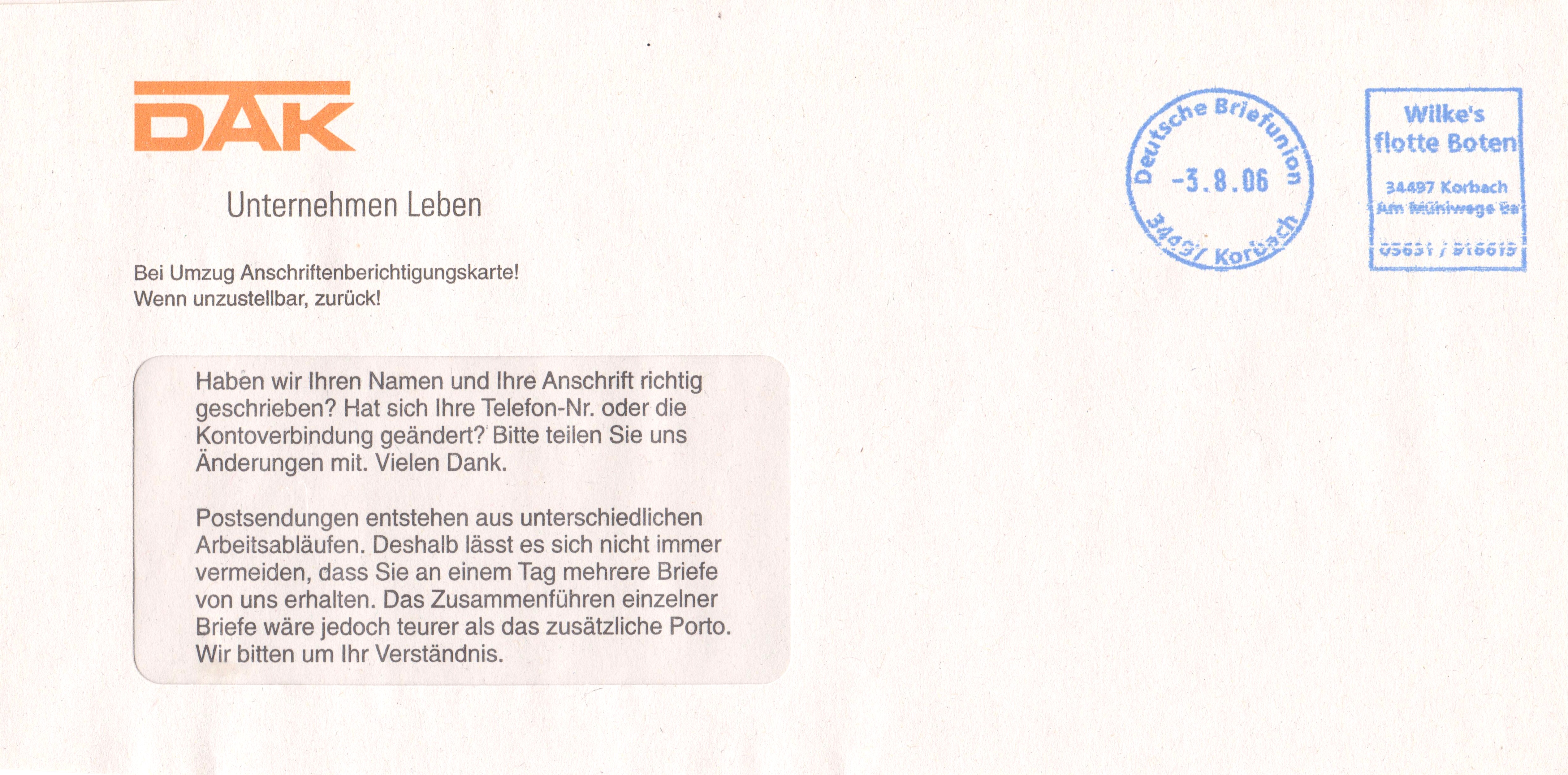 Foren-Übersicht Fragen und Diskussion Deutschland Deutschland ab 1945 Privatpost - WfB = Wilke´s flotte Boten