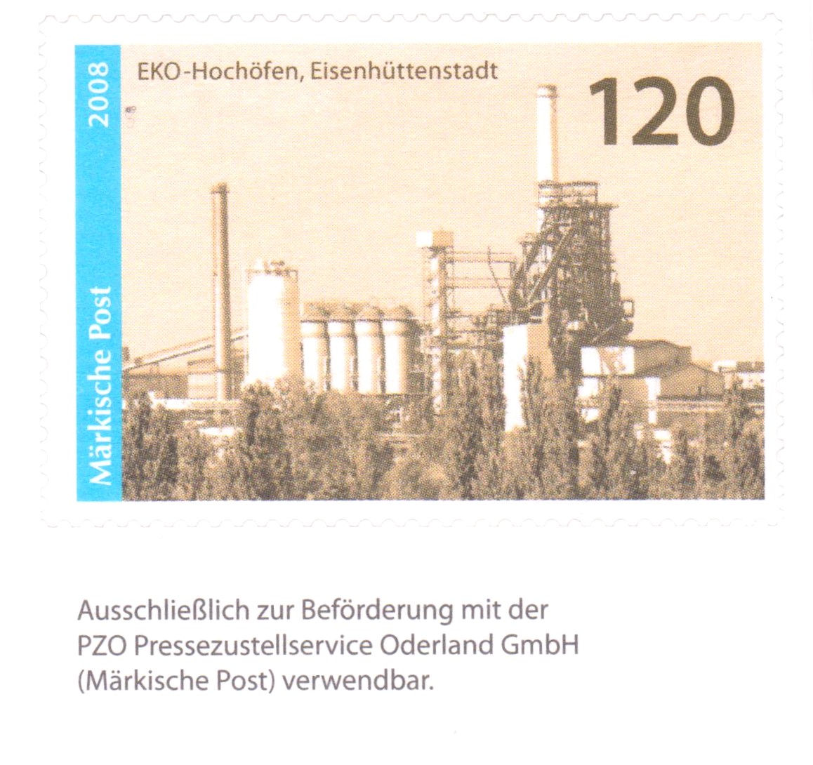 120 Cent selbstklebend vom unteren Rand des Zehnerbogens mit Zudruck "Ausschließlich zur Beförderung mit der PZO Pressezustellservice Oderland GmbH (Märkische Post) verwendbar.":