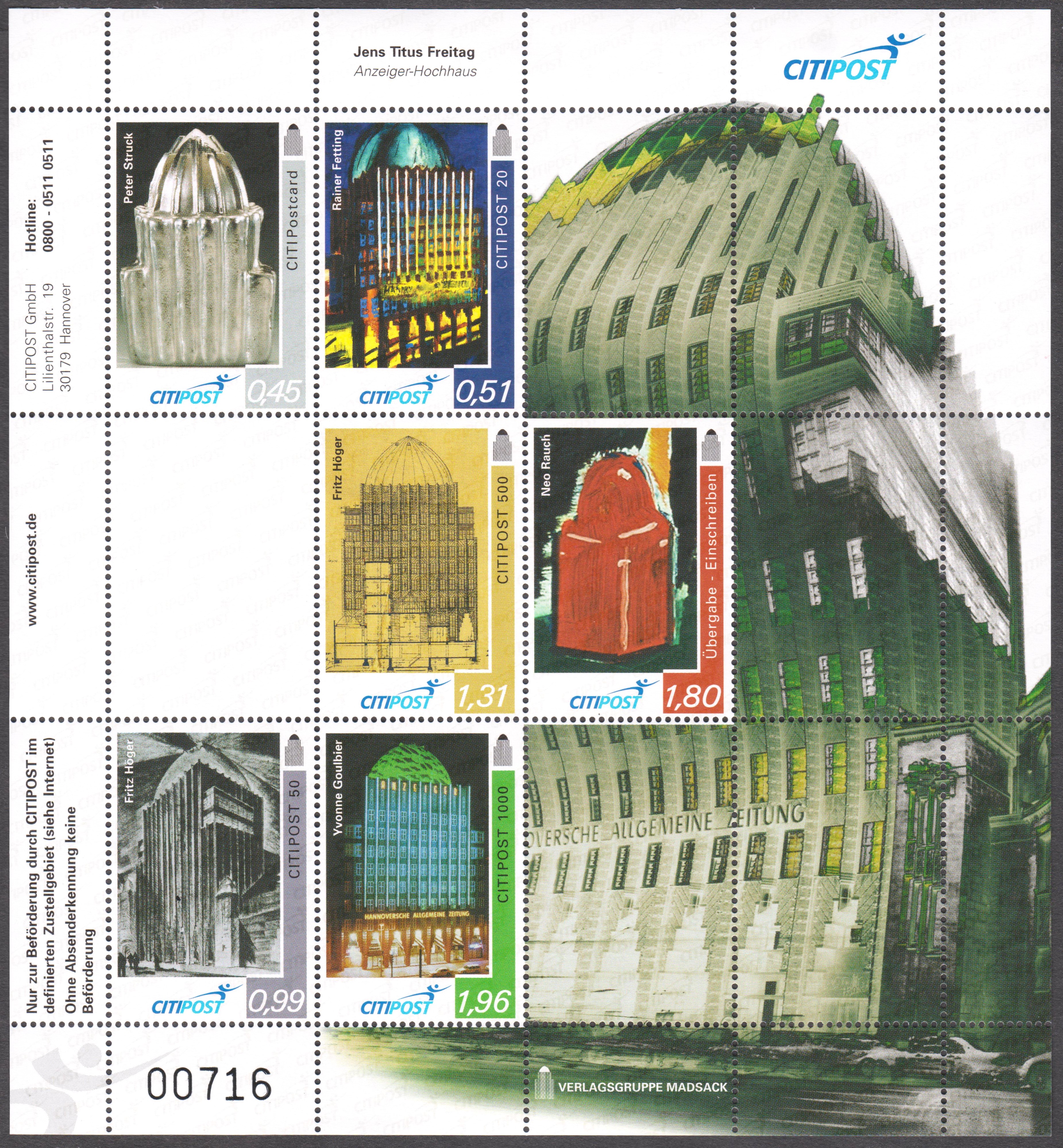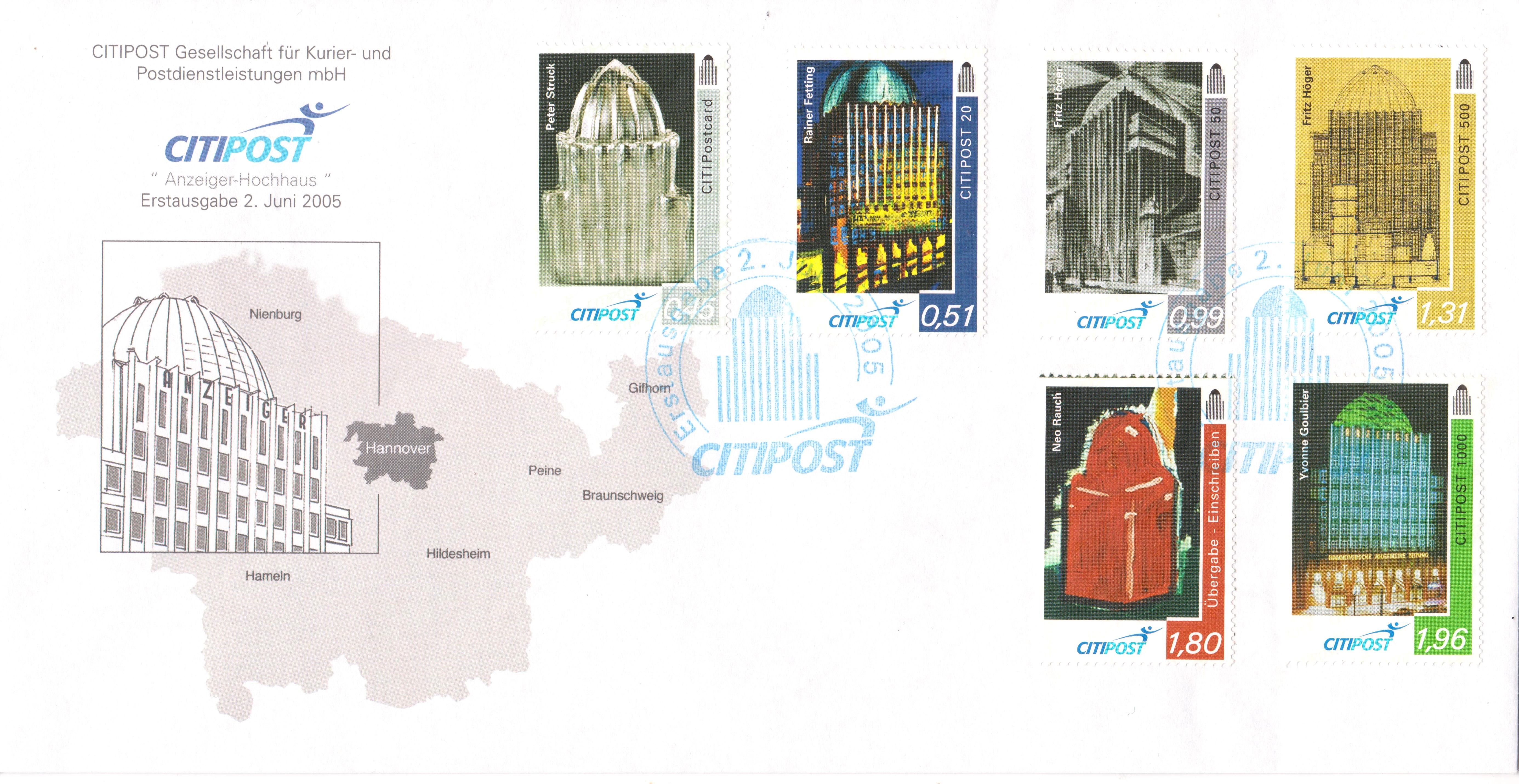 FDC der CITIPOST vom 02.06.2005 zur Markenausgabe "Anzeiger-Hochhaus":