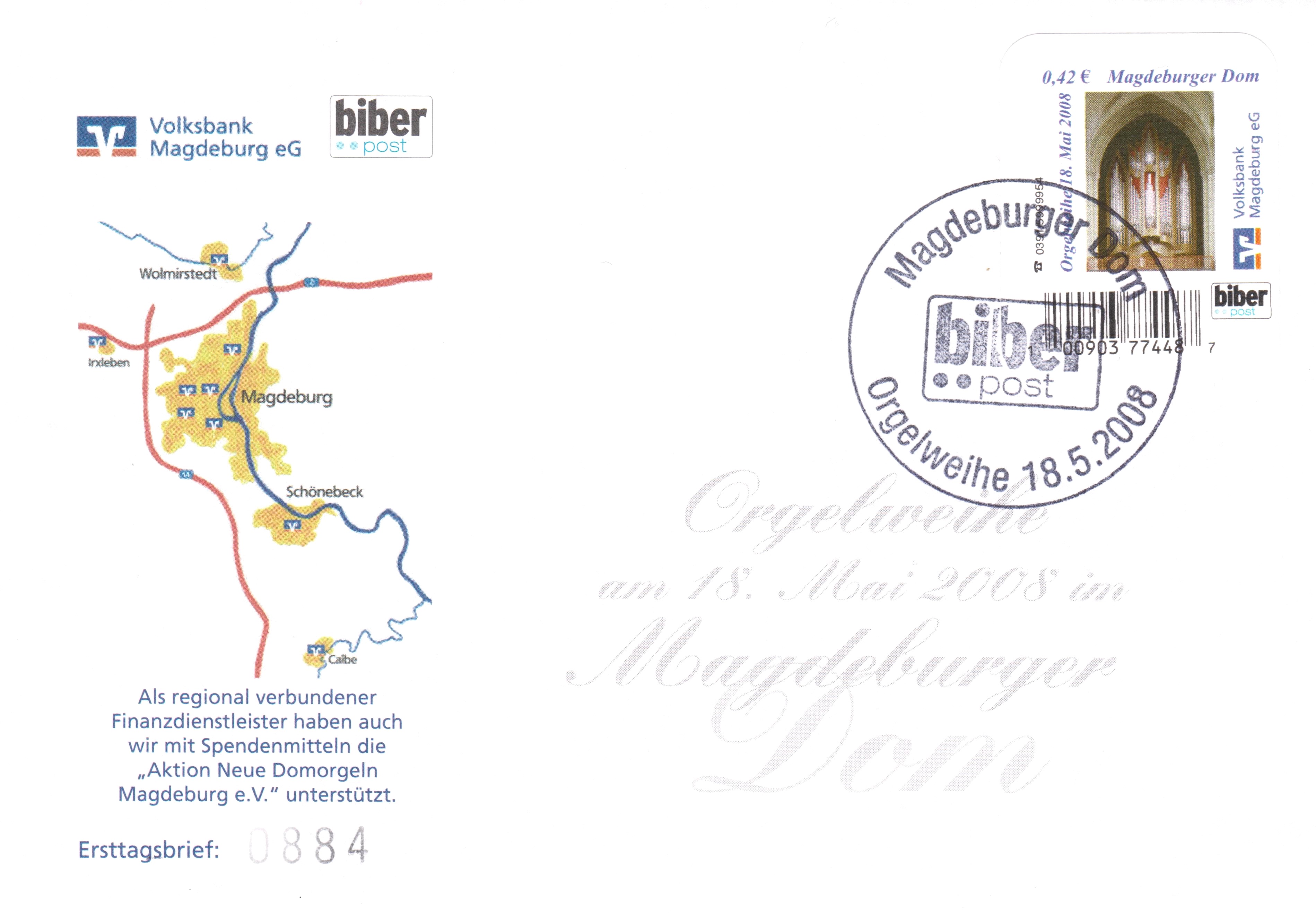 Postwertzeichen der biber post mit Label überklebt und mit Absenderfreistempel neu frankier!