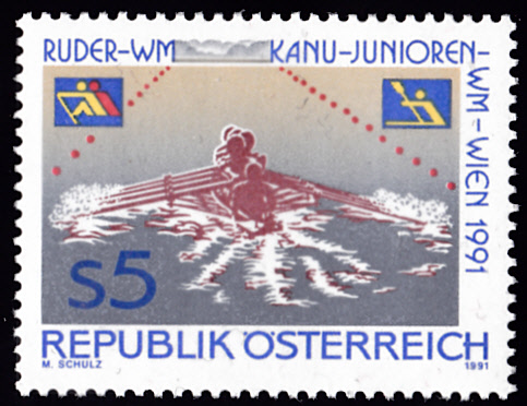 Zu den Ruder-Weltmeisterschaften 1991 und zu den Kanu-Junioren-Weltmeisterschaften 1991 in Wien erschien in Österreich eine Marke (MiNr 2036). Die Abbildung eines Doppelvierer mit Steuermann passt hier nur zur Ruder-WM, die Kanu-WM der Junioren ist nur im Text der Marke erwähnt und ein kleines Piktogramm "Kanu" wird gezeigt..