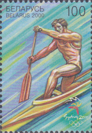 Zu den Sommerspielen 2000 in Sydney ist in Weißrussland diese Marke (MiNr 379) mit einem Einer-Canadier erschienen.