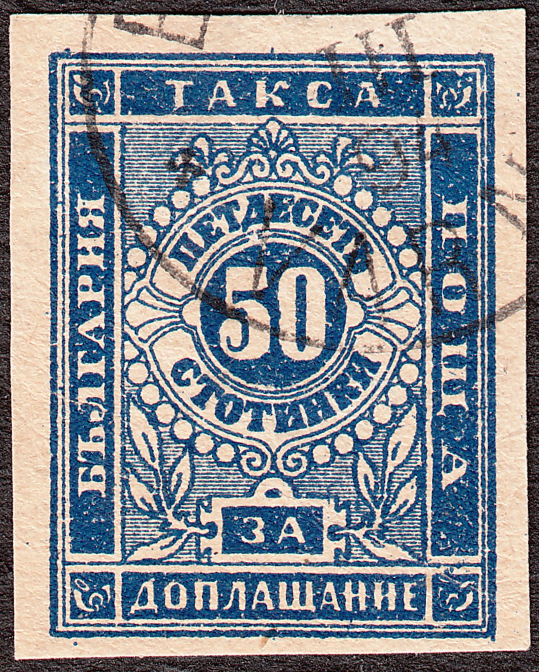 Foren-Übersicht Fragen und Diskussion Europa Bulgarien Markenausgaben Fürstentum 16.04.1879 - 04.10.1908 Portomarken Portomarken Ausgabe 1885/6 MiNr. 6 - 50 Stotinki blau Bulgarien Porto MiNr. 6