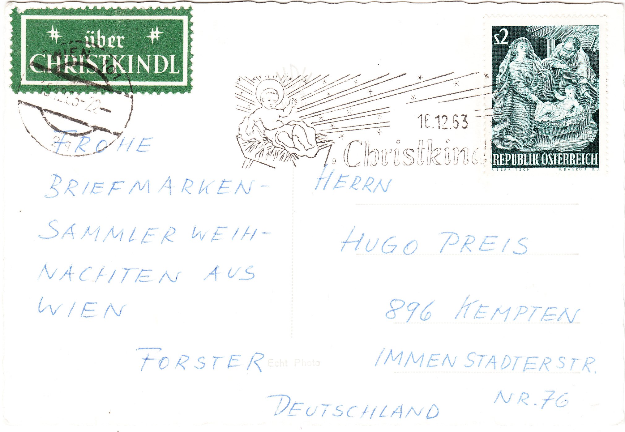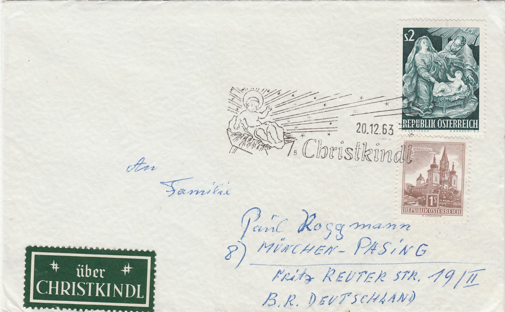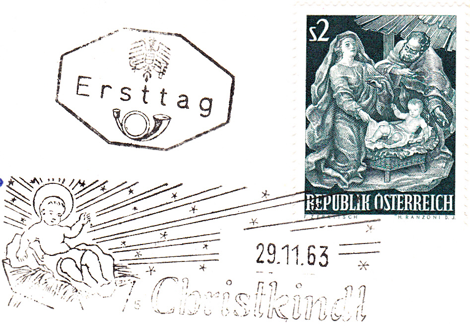Die Frankatur wurde dann am 16.12.1963 in Christkindl mit dem Stempel mit der Kennziffer "9" entwertet: