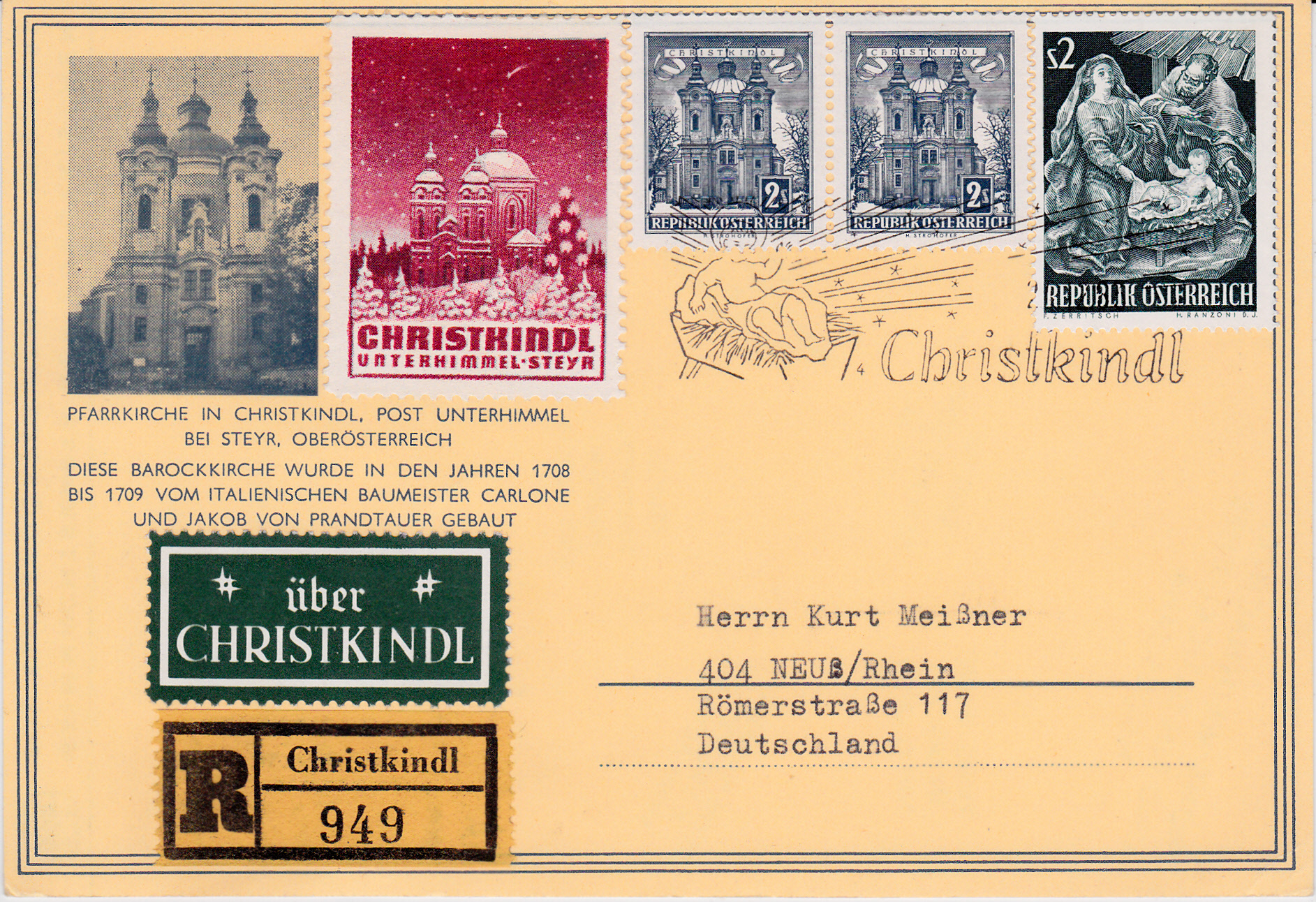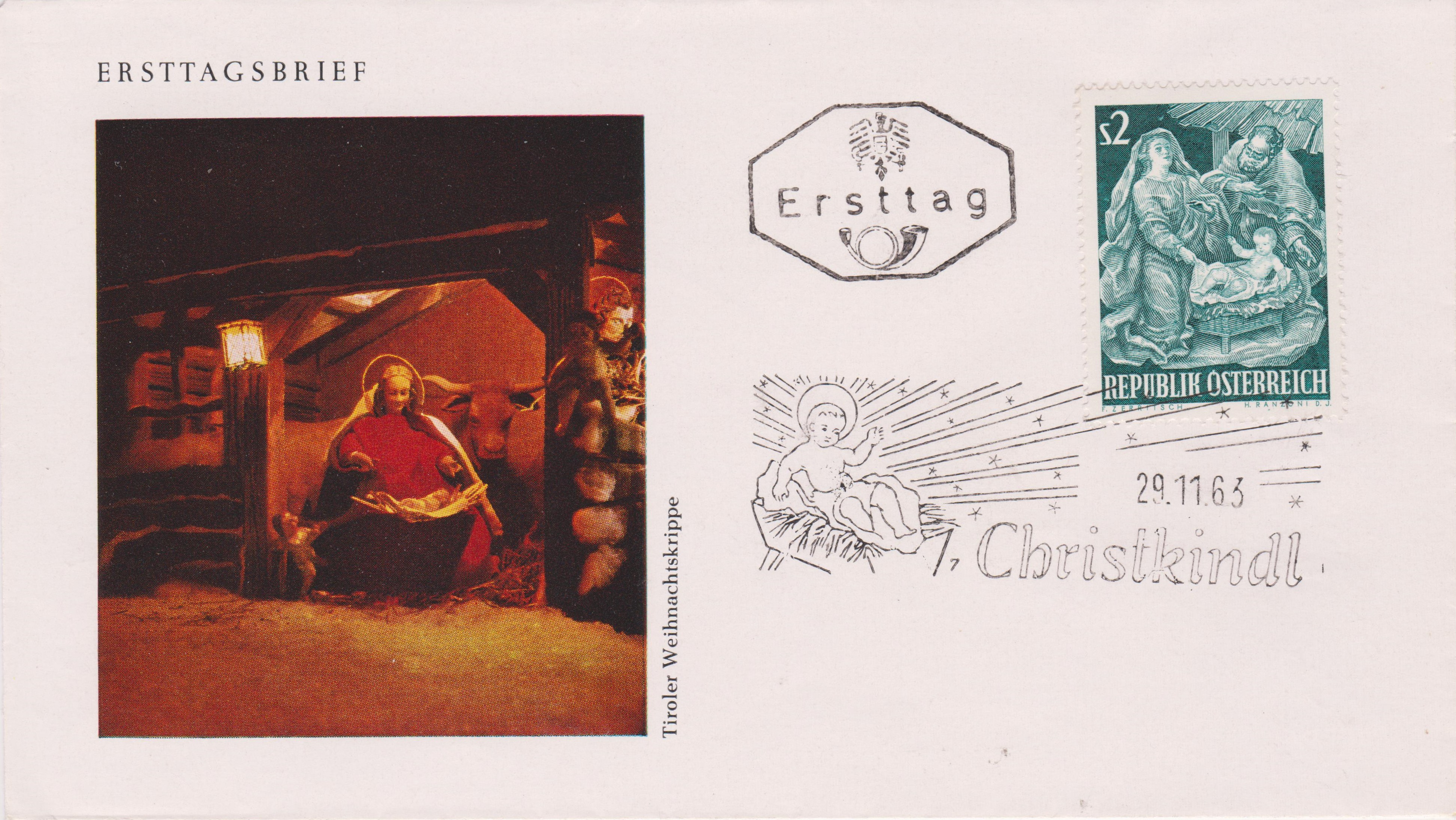 Dieser Beleg trägt einen Leitzettel "über Christkindl" und wurde daher am 15.12.1963 in WIEN eingeliefert, wo dieser Leitzettel per Tagesstempel entwertet wurde.