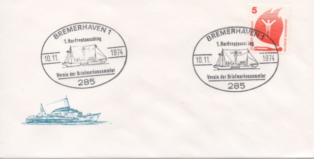 Bremerhavener Sonderstempel mit dem Feuerschiff WESER
