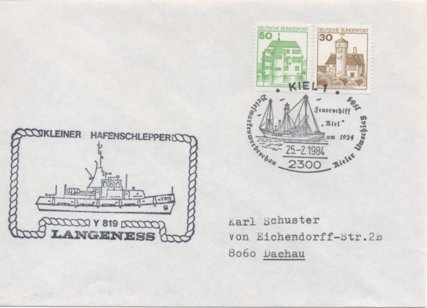 Kieler Sonderstempel mit dem Feuerschiff KIEL im Jahr 1924