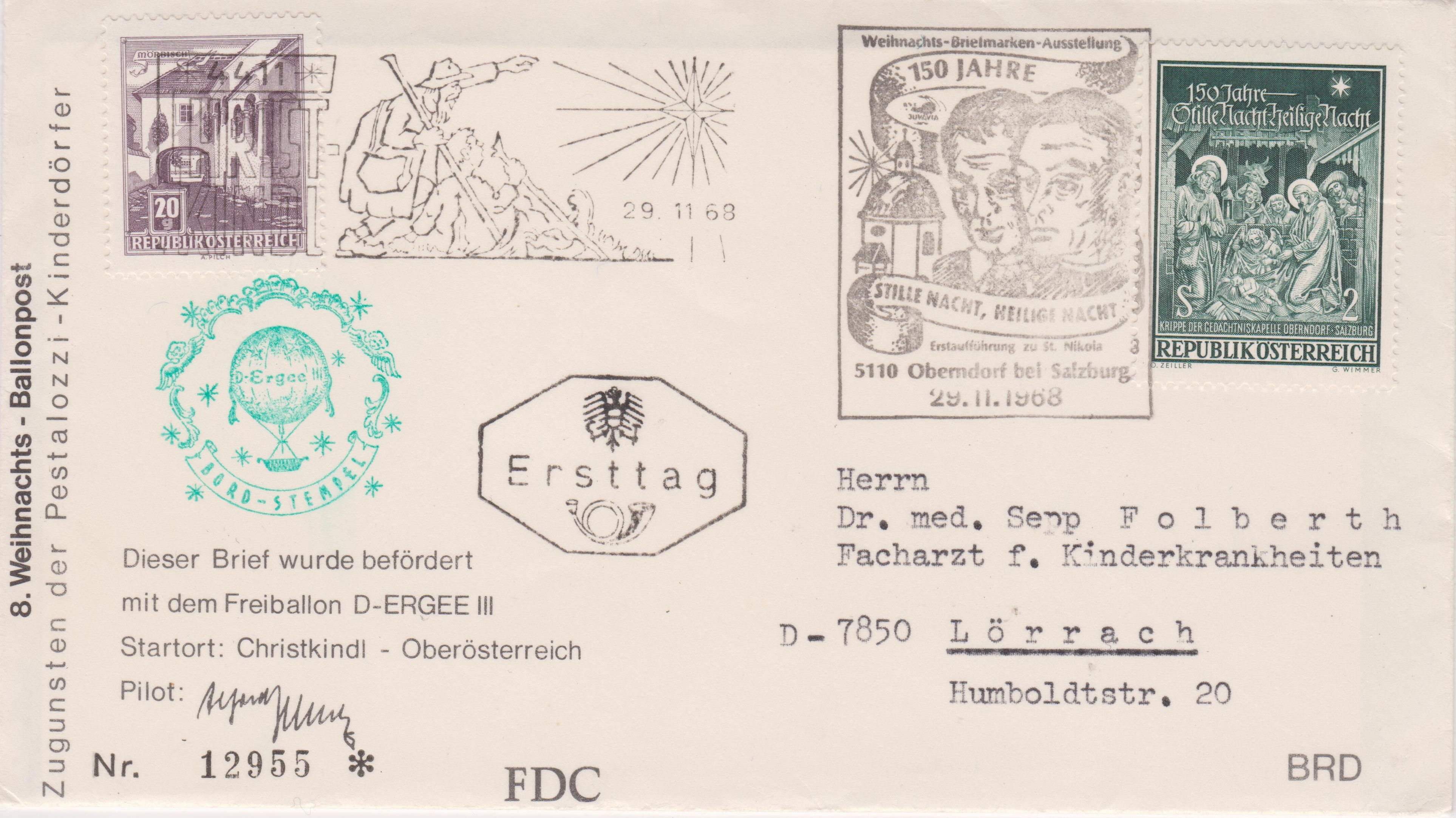 Am Startort Christkindl wurde am 29.11.1968 der Sonderstempel Christkindl des Jahres 1968 mit der Kennziffer "4" abgeschlagen: