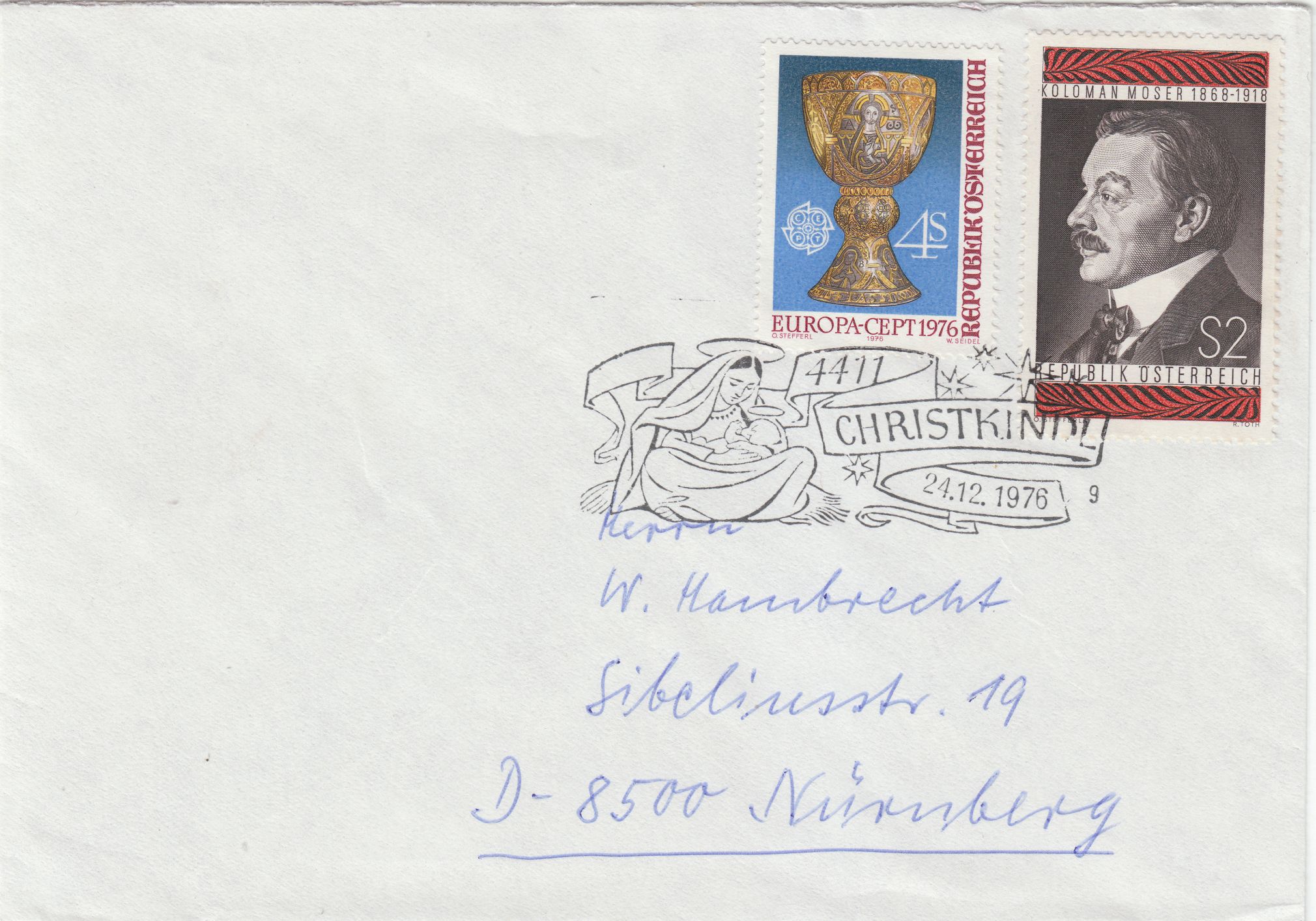 Zuleitungspost aus Wien nach Christkindl vom 17.12.1976 sowie Entwertung der Frankatur am 18.12.1976 mit Kennziffer "8":