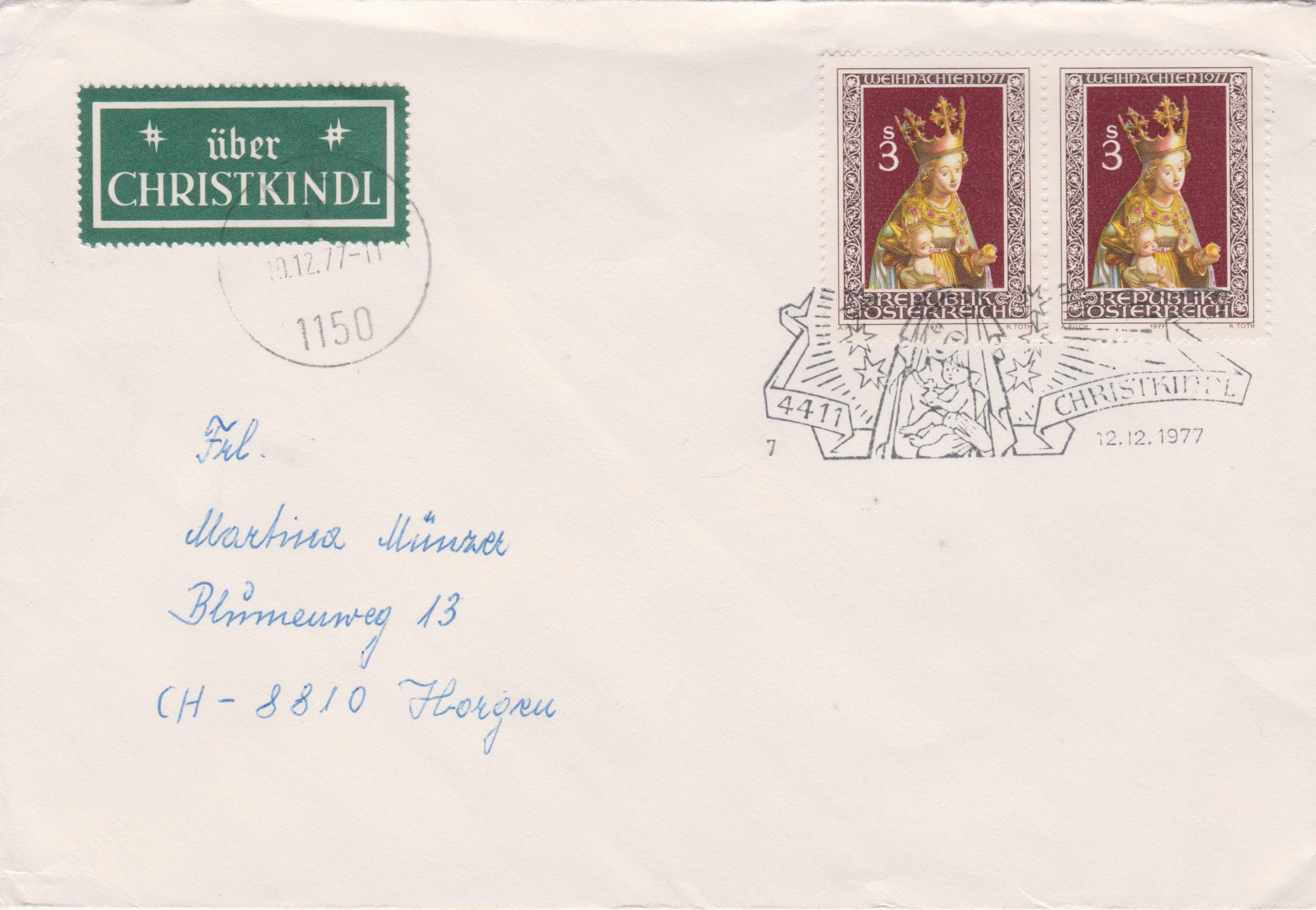 Die Frankatur wurde am 12.12.1977 in Christkindl entwertet mit Kennziffer "7".