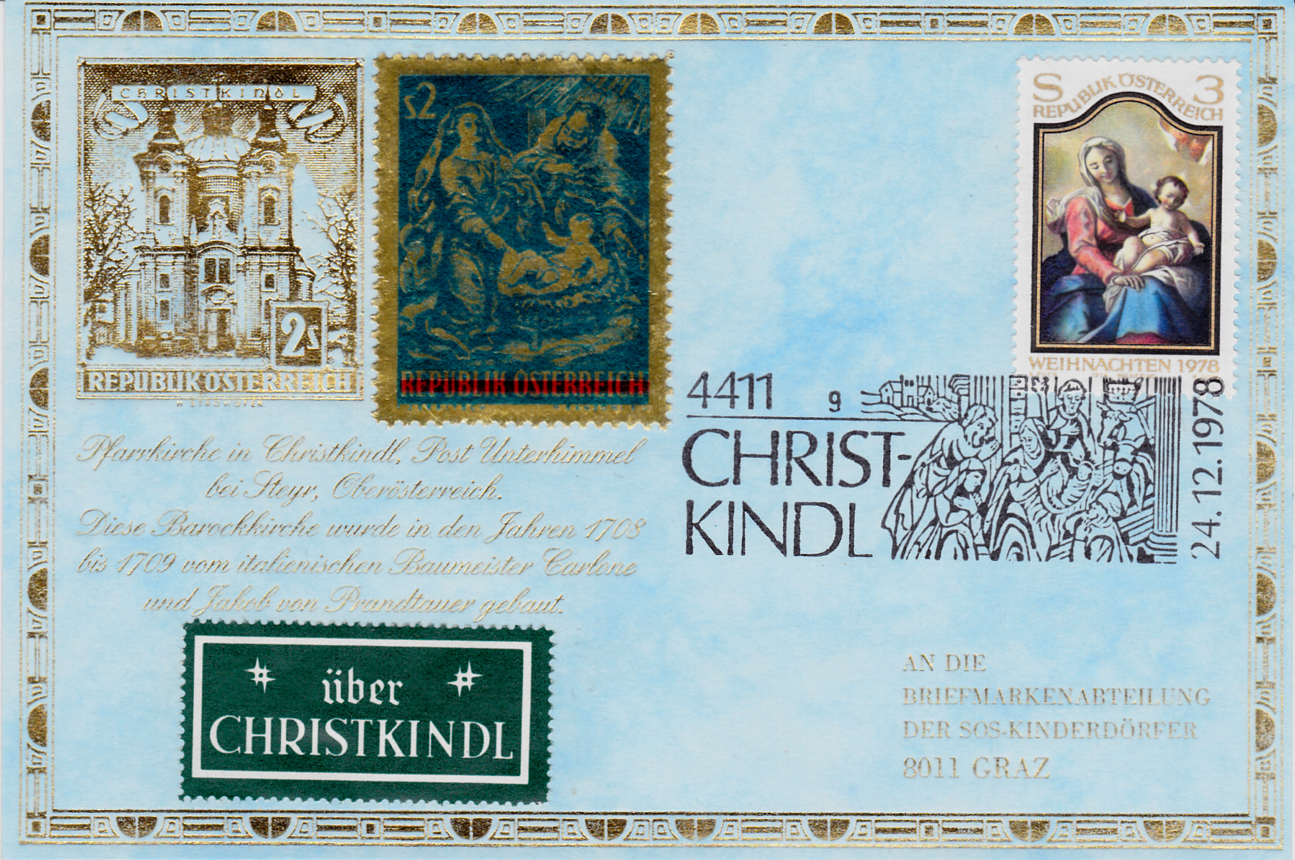 Hier diente der Sonderstempel Christkindl aus dem Jahr 1978 mit der Kennziffer "6" zur Entwertung der Weihnachtsmarke 1978 von Österreich: