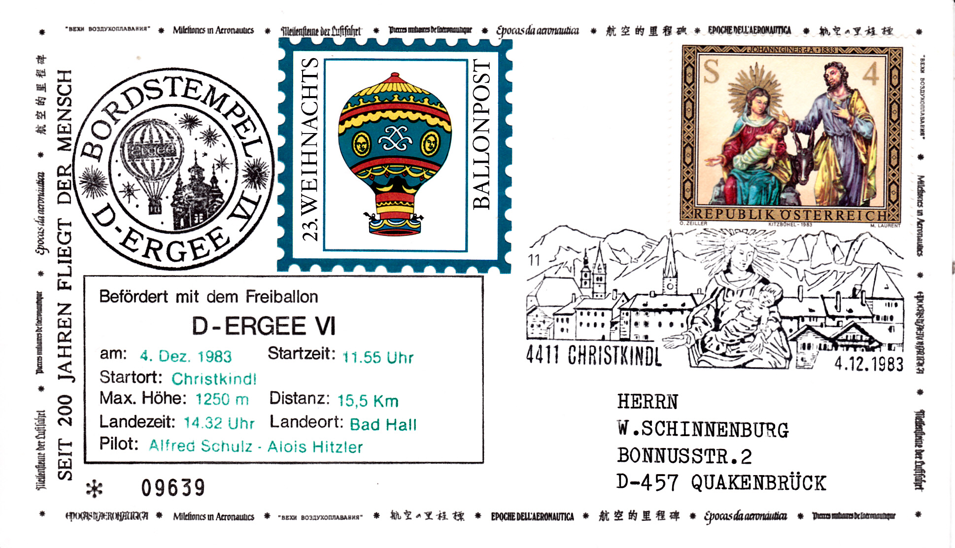 Dieser Briefumschlag der 23.Weihnachtsballonpost wurde mit dem Stempel mit der Kennziffer "10" gestempelt: