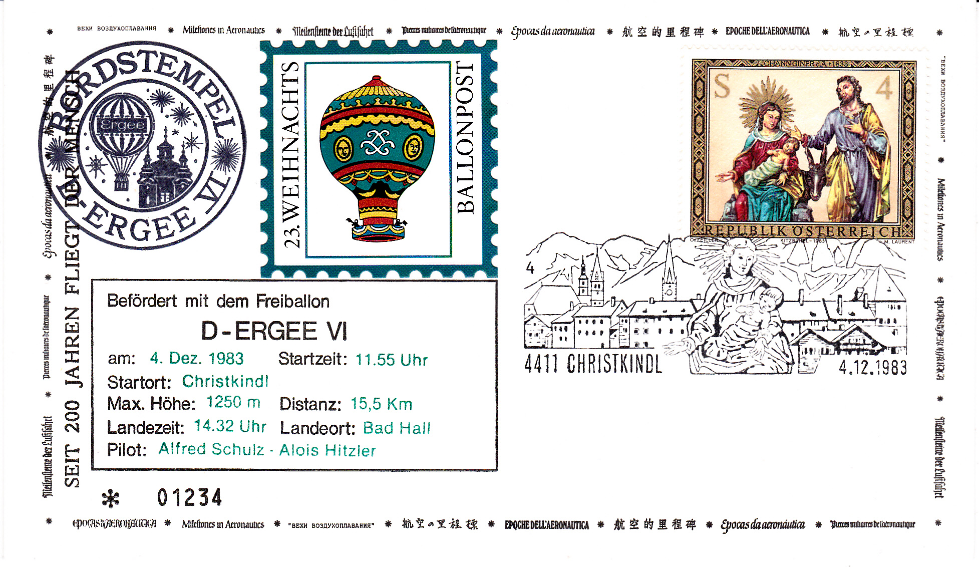 Dieser Briefumschlag der 23.Weihnachtsballonpost wurde mit dem Stempel mit der Kennziffer "4" gestempelt: