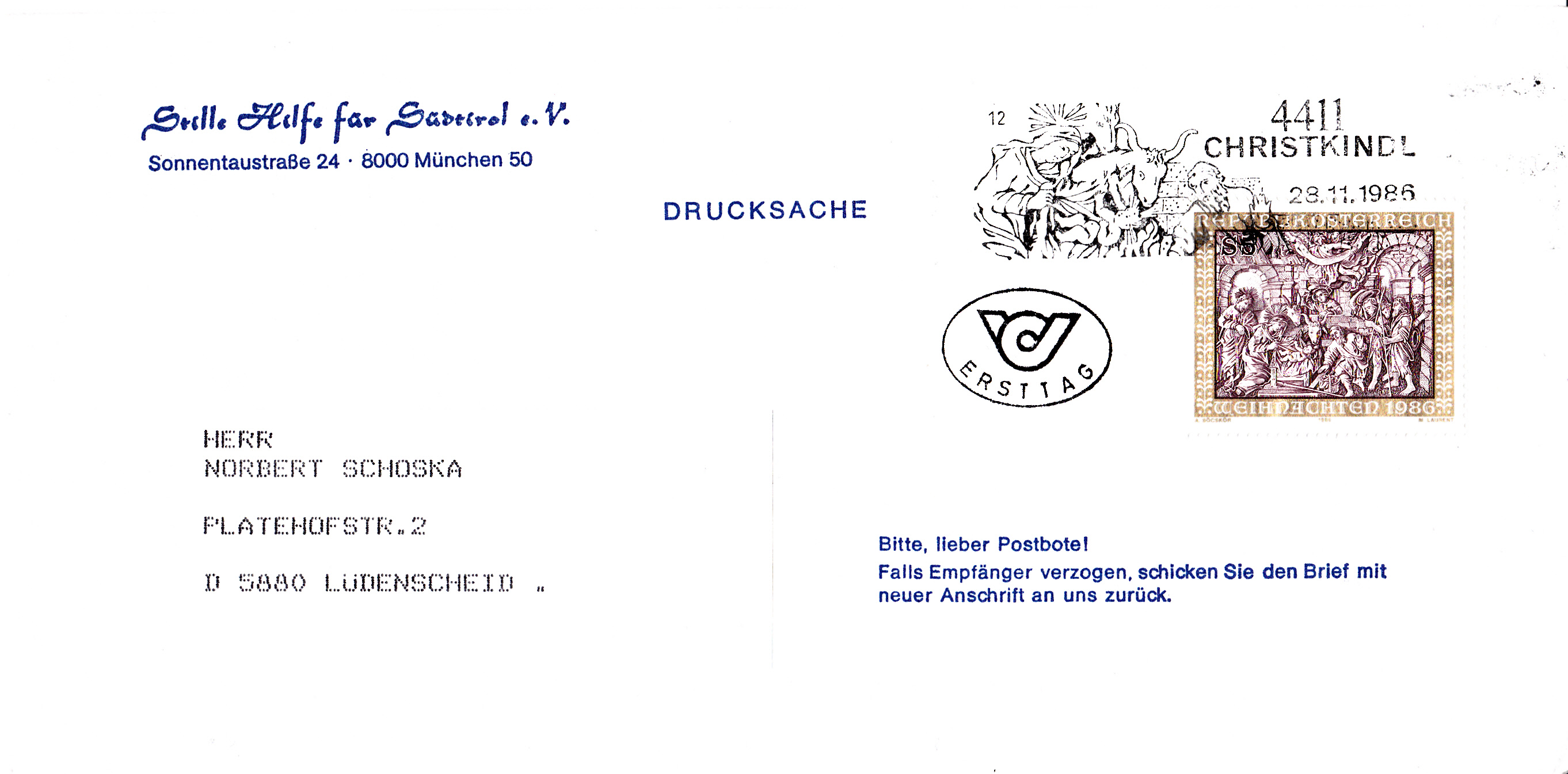 Foren-Übersicht Themen des Monats 2018 Thema des Monats November/Dezember 2018 - Weihnachten Christkindl 1986 Sonderstempel Christkindl