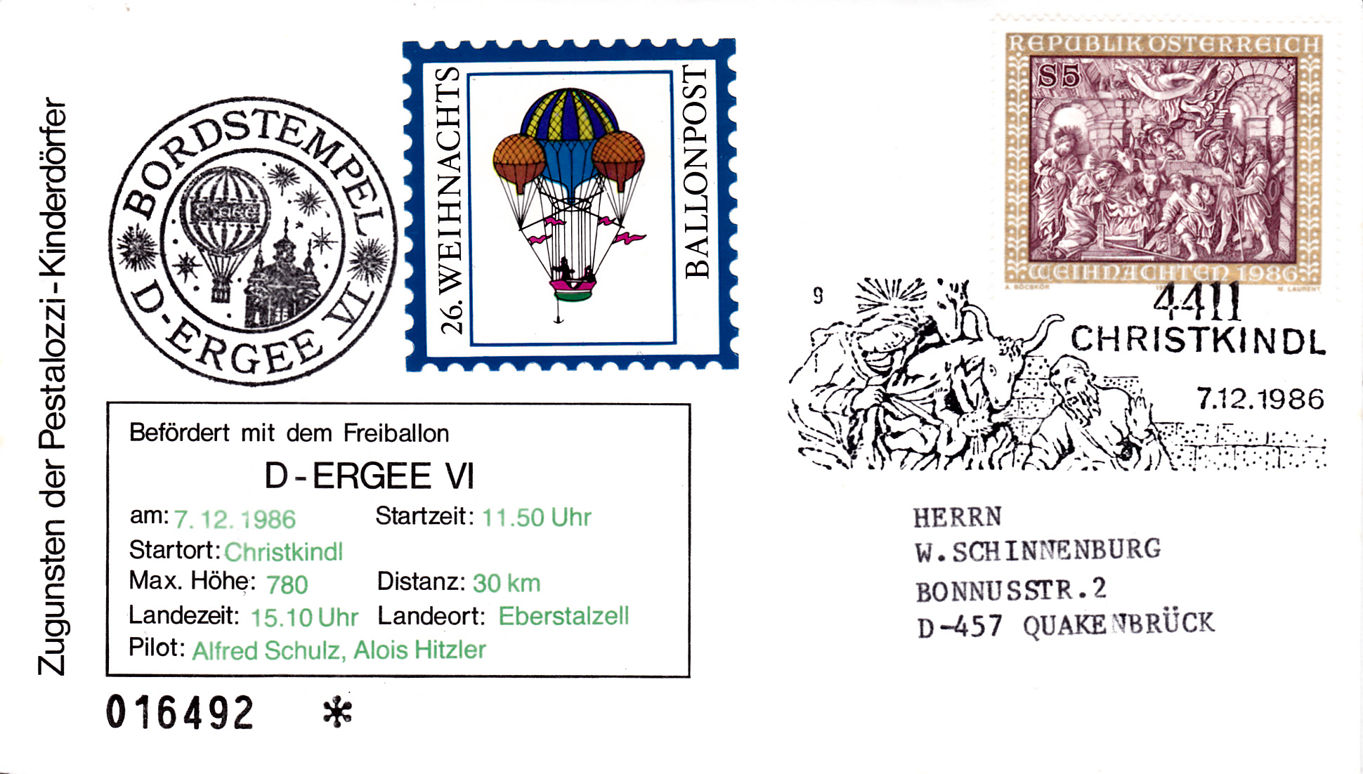 Dieser Briefumschlag der 26.Weihnachtsballonpost wurde mit dem Stempel mit der Kennziffer "9" gestempelt: