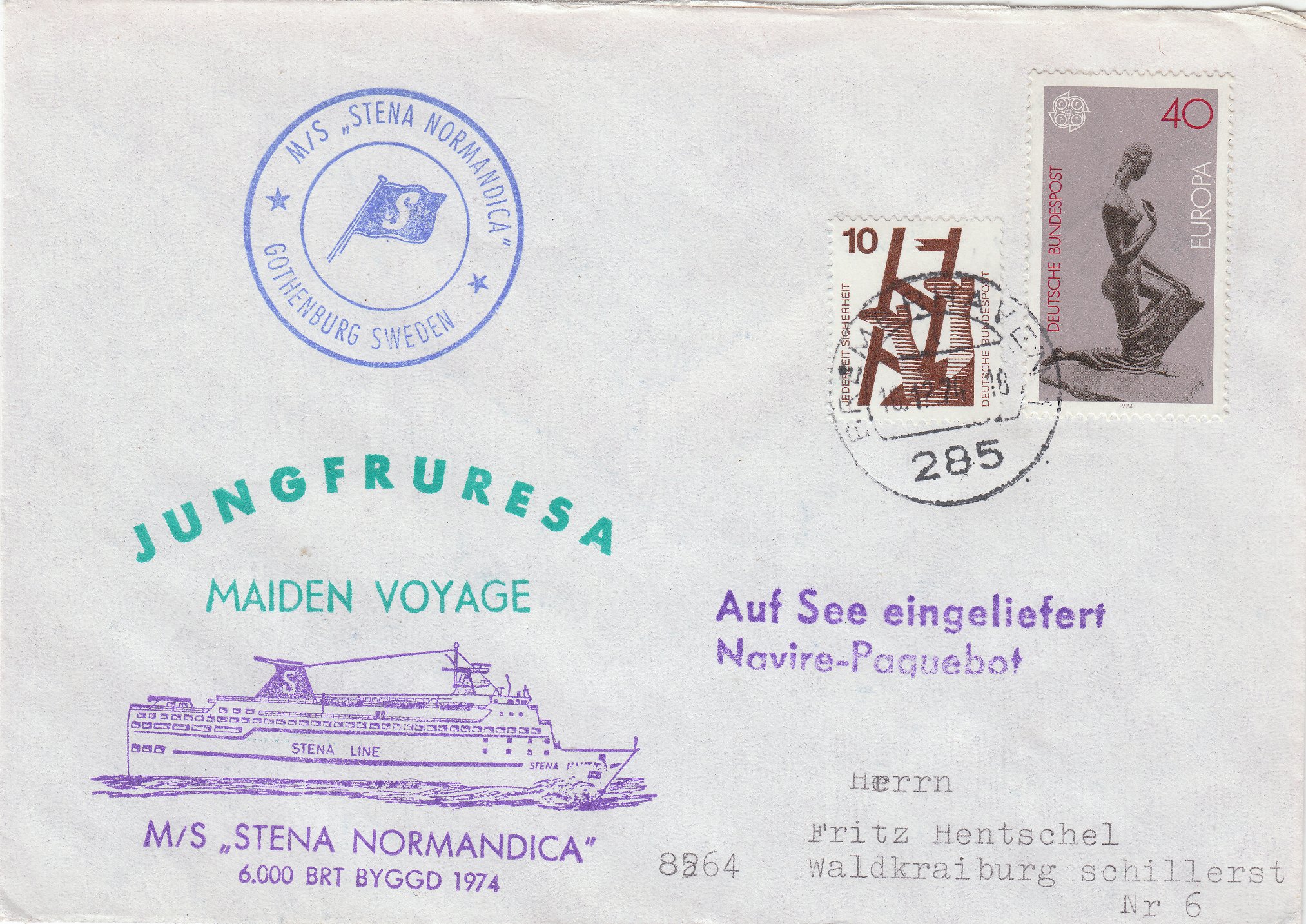 Dieser Beleg stammt von der Jungfernfahrt des Schiffes und wurde am 16.12.1974 in Bremerhaven aufgegeben: