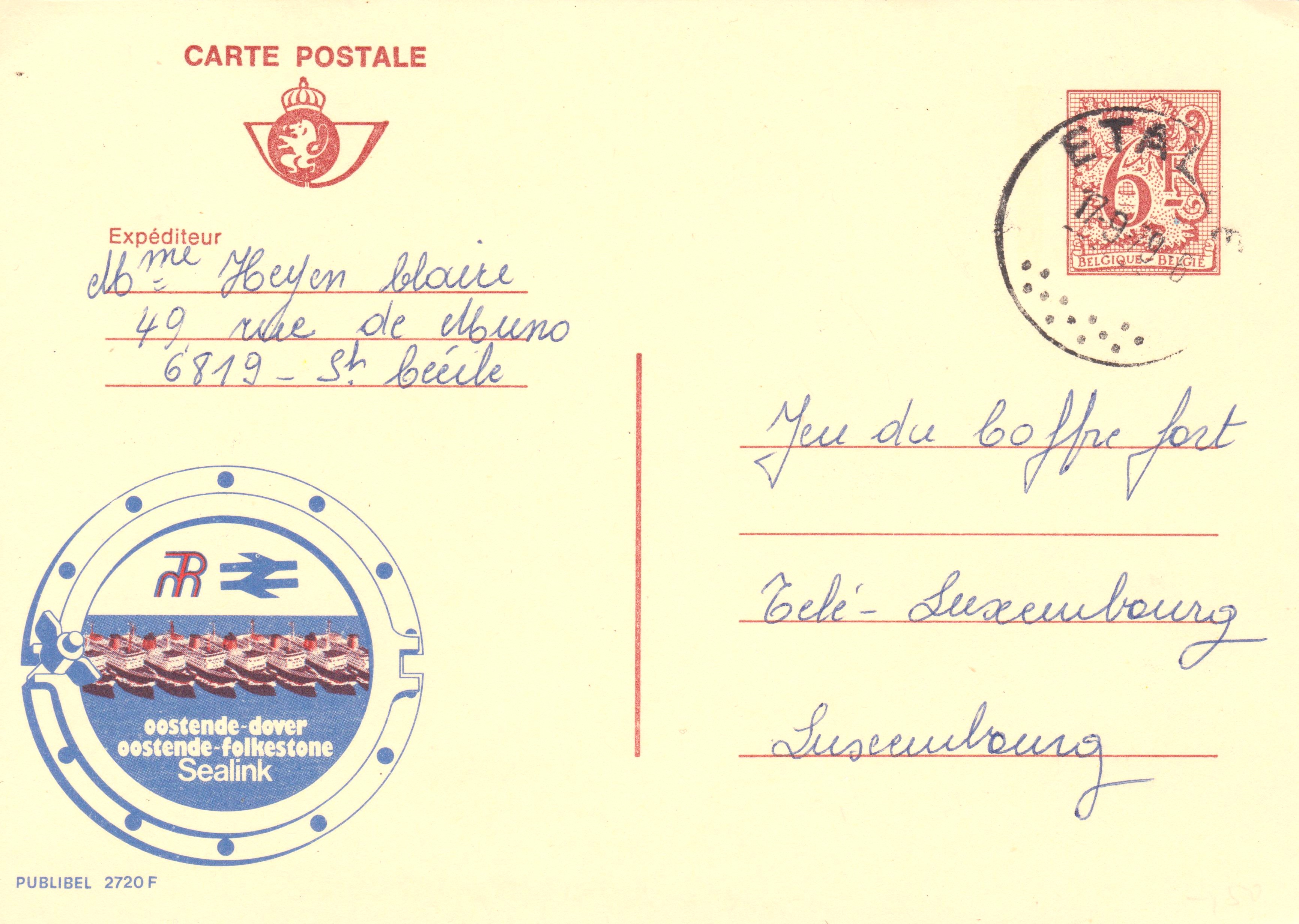 Belgische Postkarte mit Zudruck PUBLIBEL 2720 F "Sealink oostende-dover oostende-folkestone":