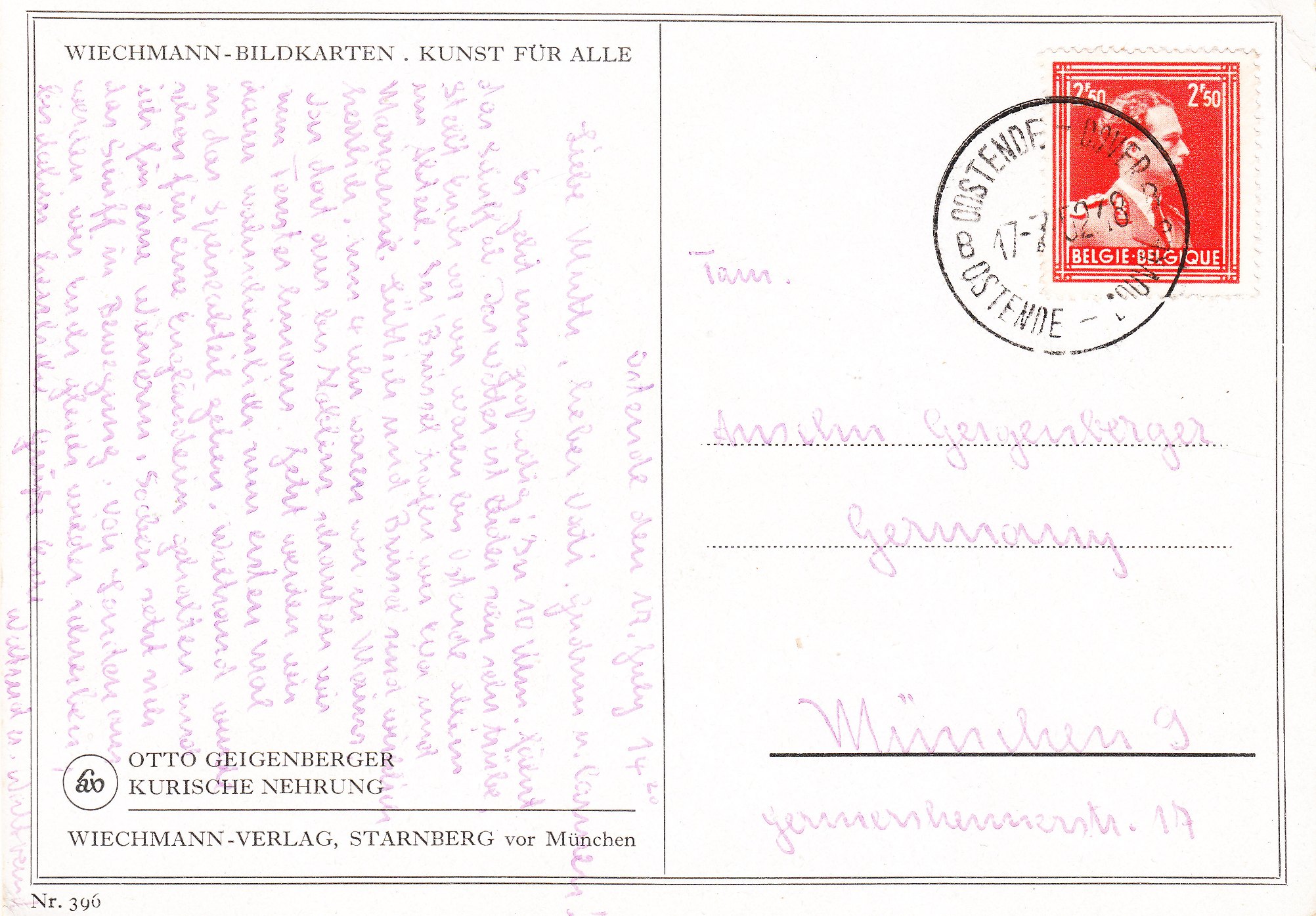 Diese Postkarte mit englischer Frankatur wurde am 17.04.1953 ebenfalls mit dem belgischen Stempel auf der Fähre entwertet: