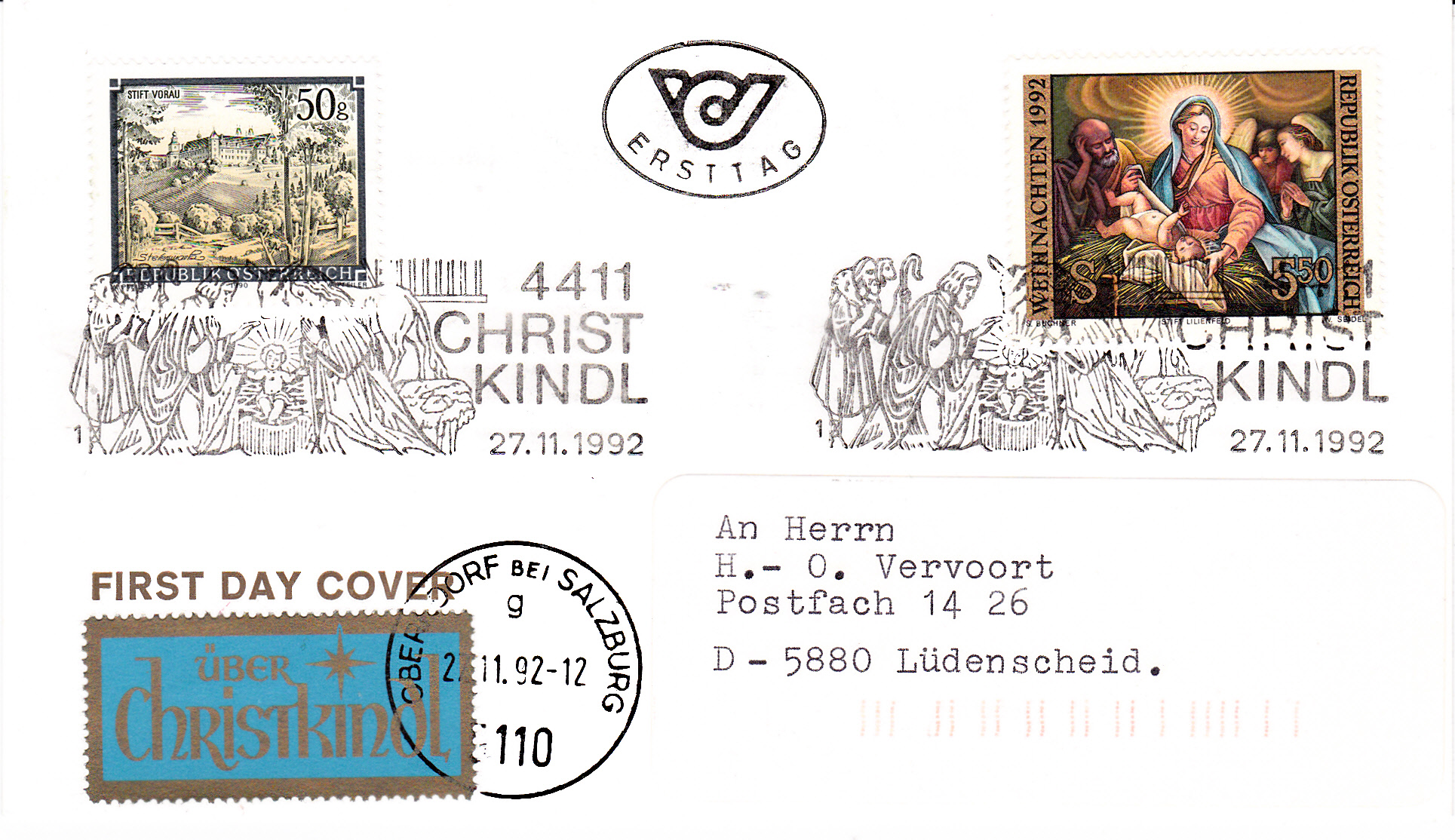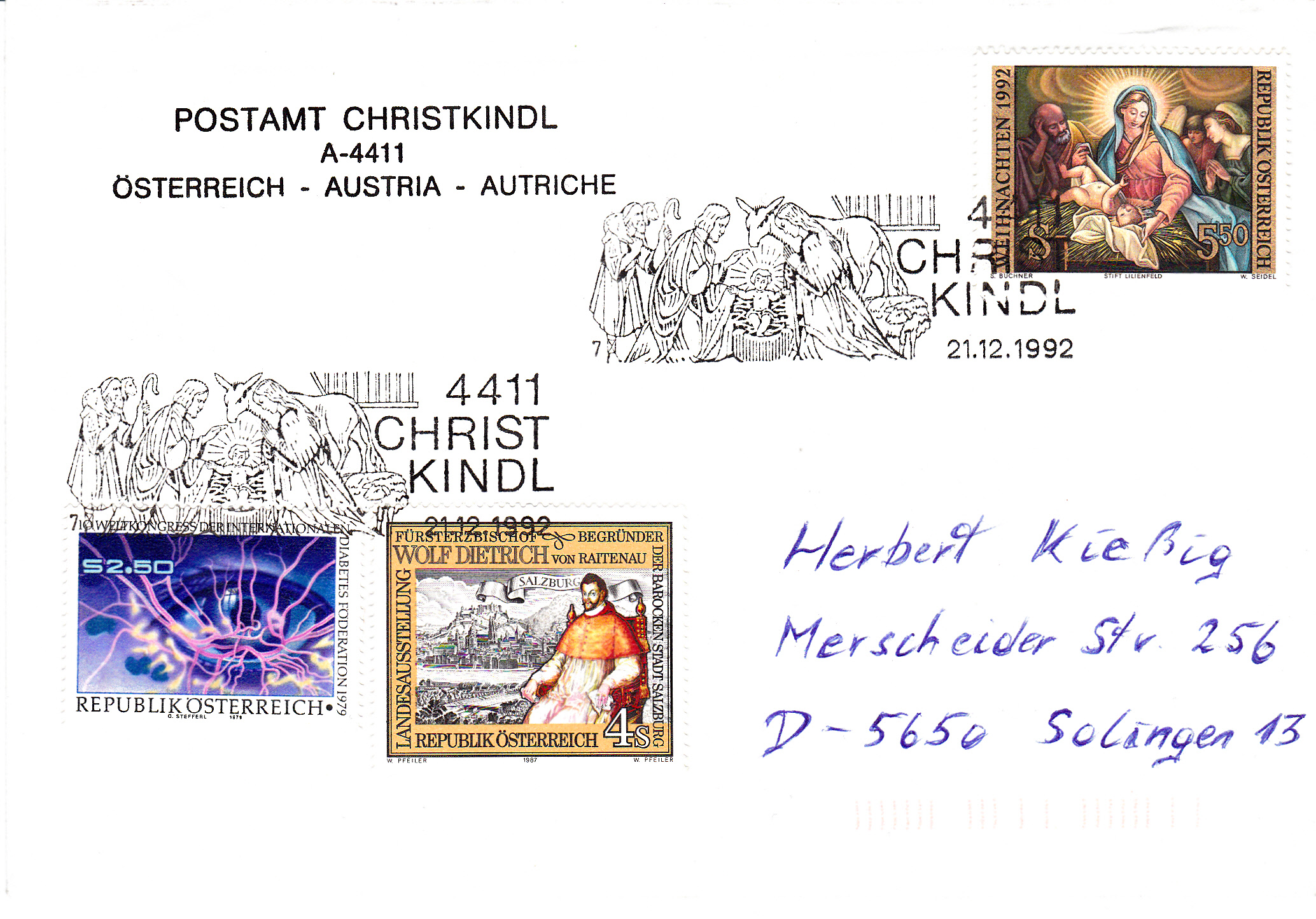 Foren-Übersicht Themen des Monats 2018 Thema des Monats November/Dezember 2018 - Weihnachten Christkindl 1992 Sonderstempel Christkindl