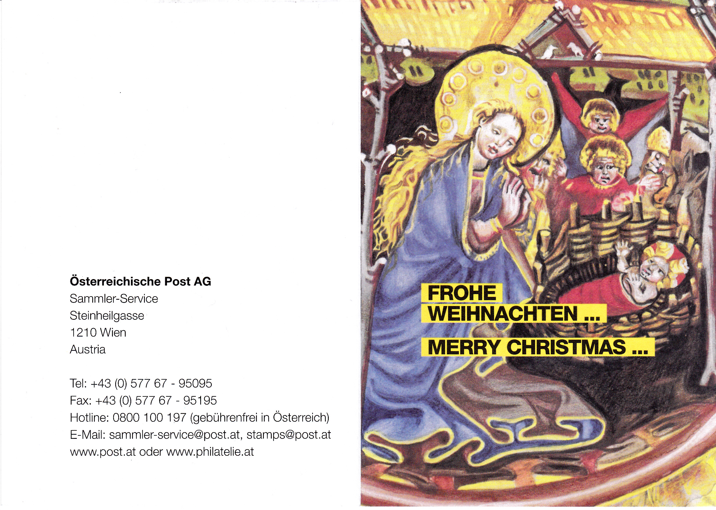 Hier ein "Sonderstempel" Christkindl aus dem Jahre 2011 ohne Kennziffer. Der Stempel im vorigen Beitrag hat die Kennziffer "1". Dieser Stempel stammt aus einer Weihnachtsklappkarte der Österreichischen Post und ist offensichtlich aufgedruckt.
