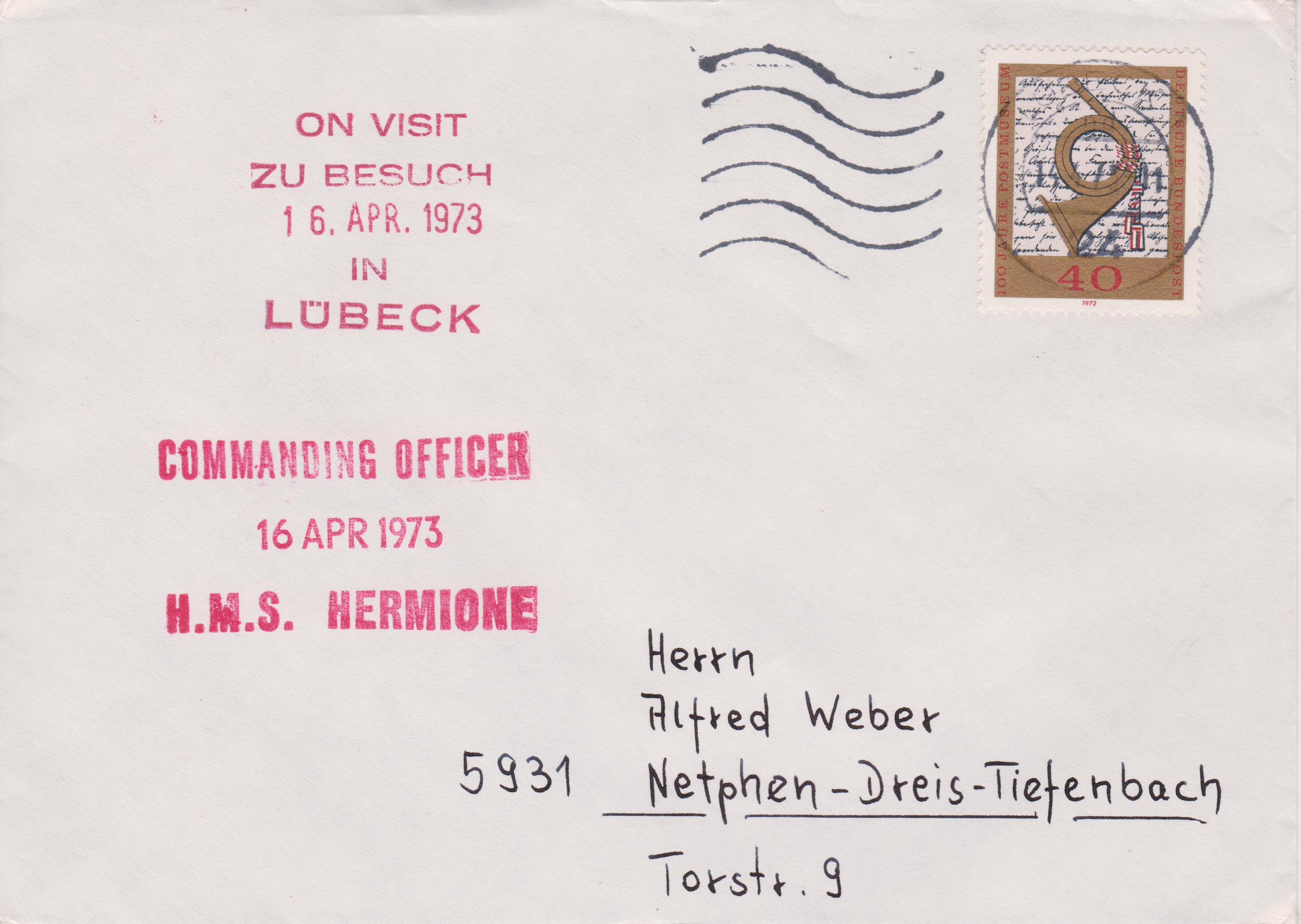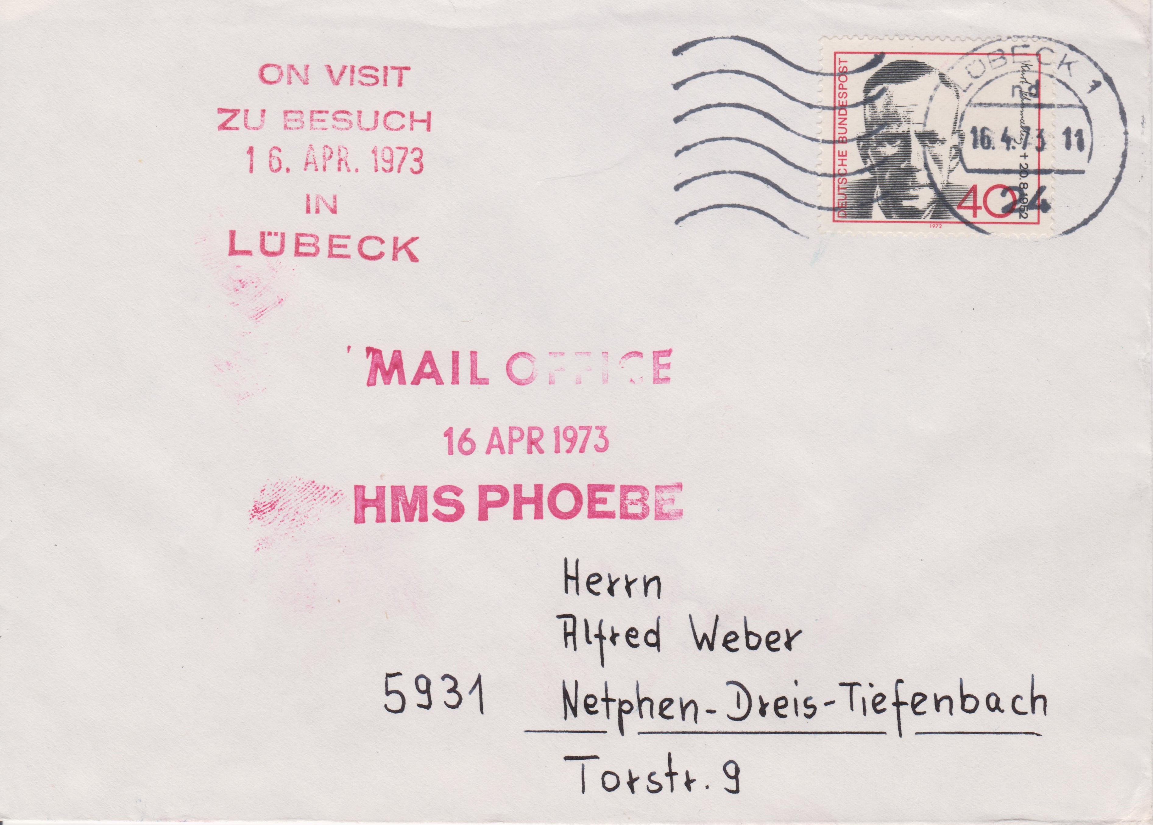 Am 16.04.1973 war die MHS PHOEBE zu Besuch in Lübeck, was dieser Beleg dokumentiert: