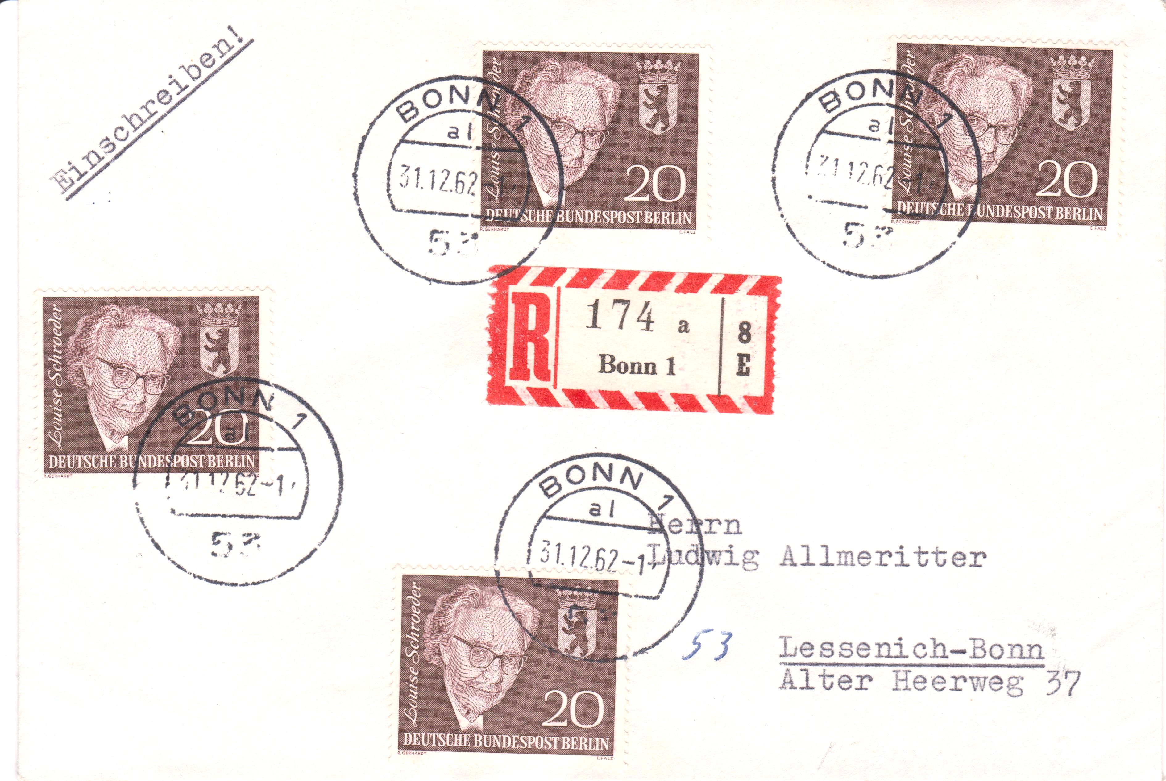 Bei diesen am 31.12.1963 in AMMERLAND nach München aufgegebenen Postkarten wurde das falsche Zustellamt angegeben, weshalb ein Hinweisstempel "FalschesZustellamt angegeben, daher verzögert" angebracht wurde: