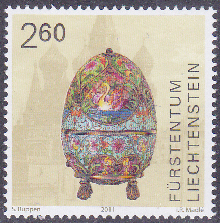 Eine dritte Marke (MiNr 1590) zeigt ein Osterei in Cloisonné-Email von Pawel Owtschinnikow.