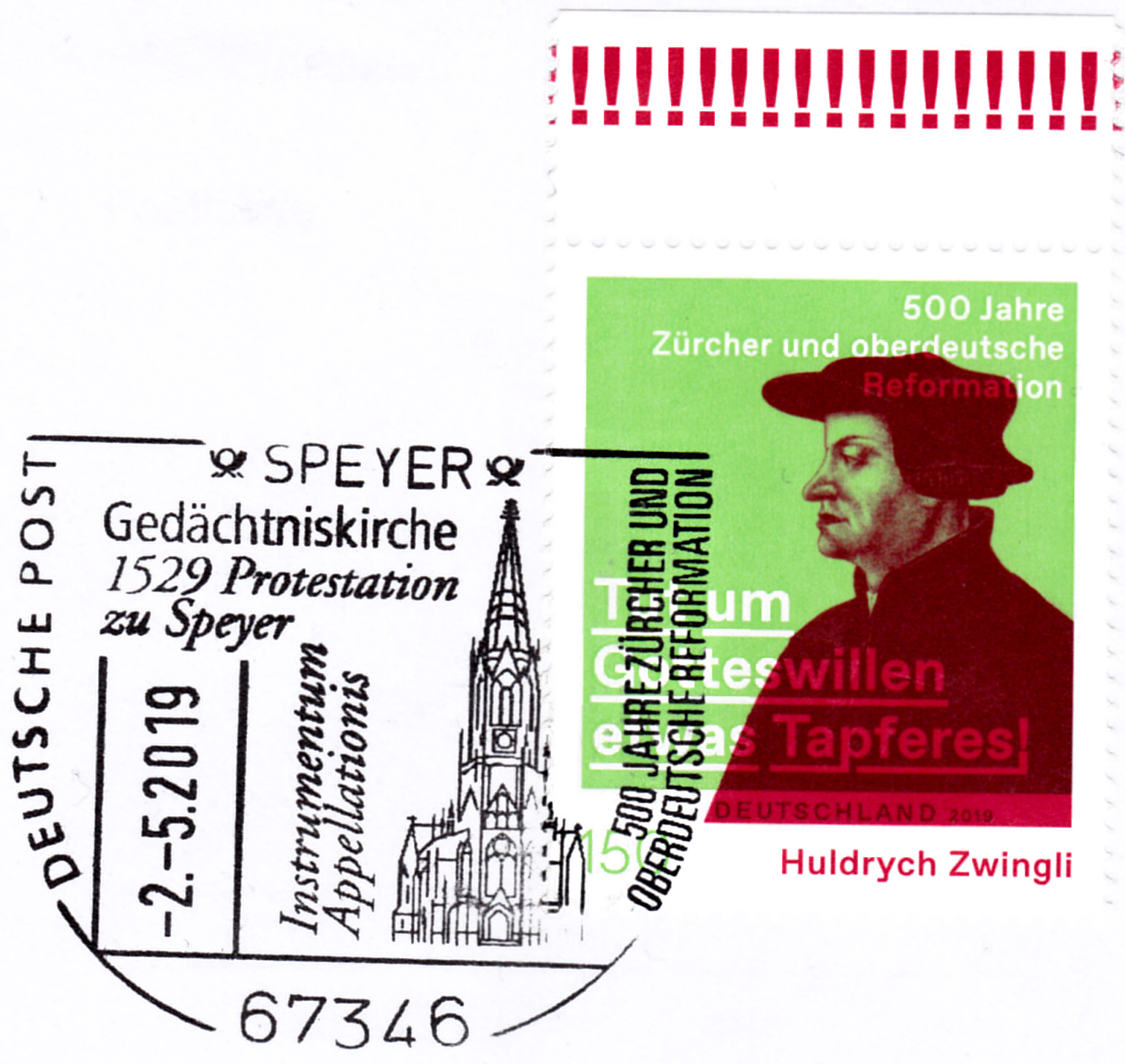 Auf dem Bogenrand befindet sich ein korrigierter Bogenwertzudruck (KBWZ). Da die Marken bogenweise mittels Druckmaschinen entwertet wurden, wurden bei der Entwertung des kompletten Bogens eine bzw. mehrere anhängende Marken durch kleine Stempelsegmente unverkäuflich und der Verkaufswert war geringer und dieser wurde auf den Bogenrand gedruckt.