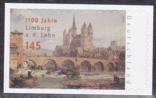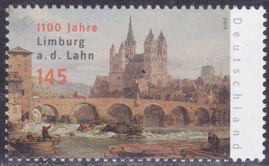 Die Marke zum Jubiläum "1100 Jahre Limburg an der Lahn" (MiNr 2773) bildet den hier schon erwähnten Limburger Dom nach einem Gemälde von George Clarkson Stanfield (1828-1878, britischer Maler) ab.