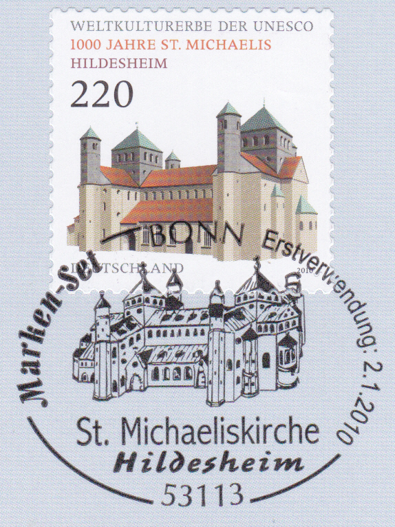 In der Serie "UNESCO-Welterbe" erschien bei der Deutschen Post zum Jubiläum "1000 Jahre St.-Michaelis-Kirche" diese Marke (MiNr 2774).