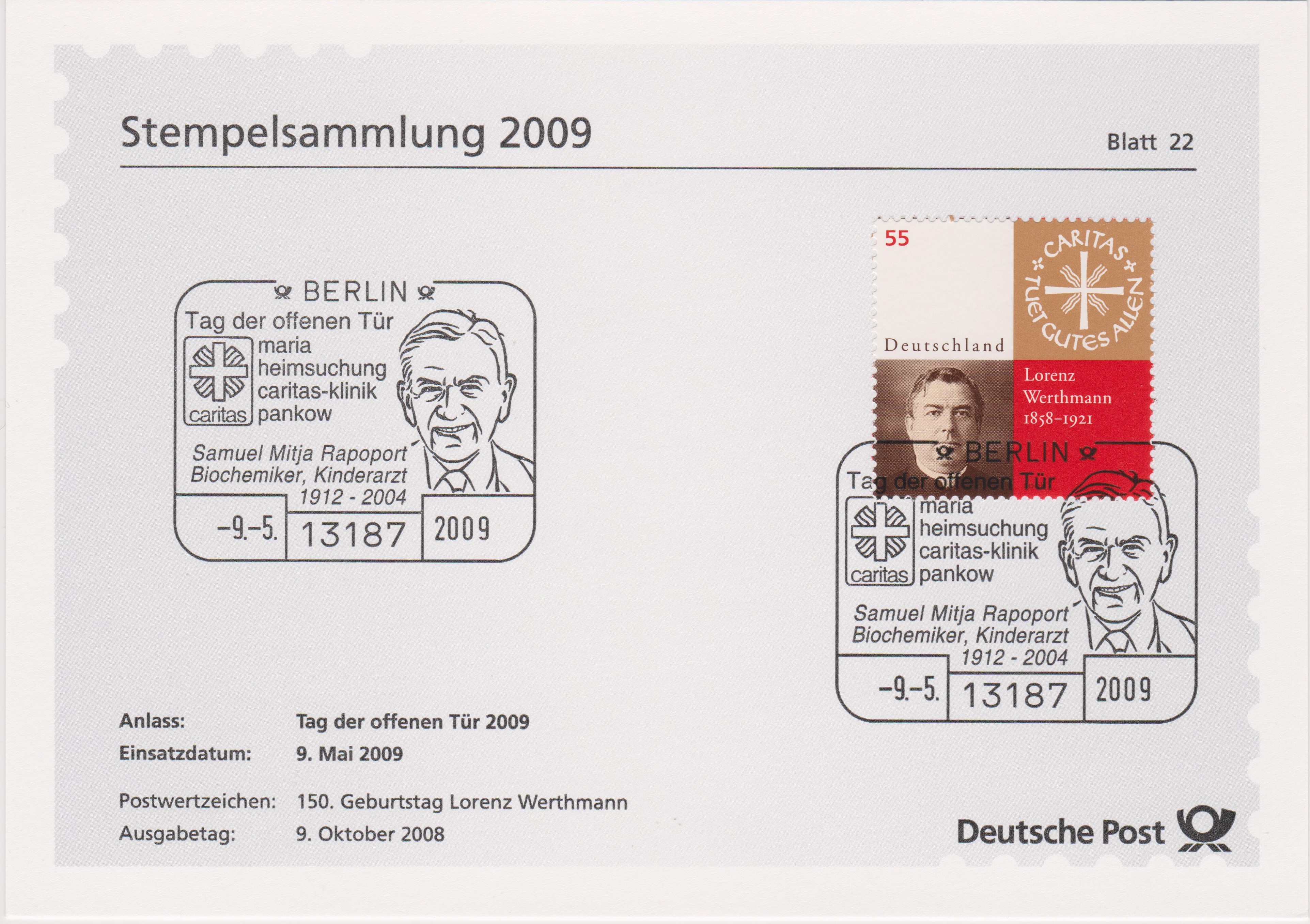 Die Deutsche Post würdikte ihn am 09.05.2009 mit diesem Sonderstempel, hier auf "Blatt 22" der "Stempelsammlung 2009":